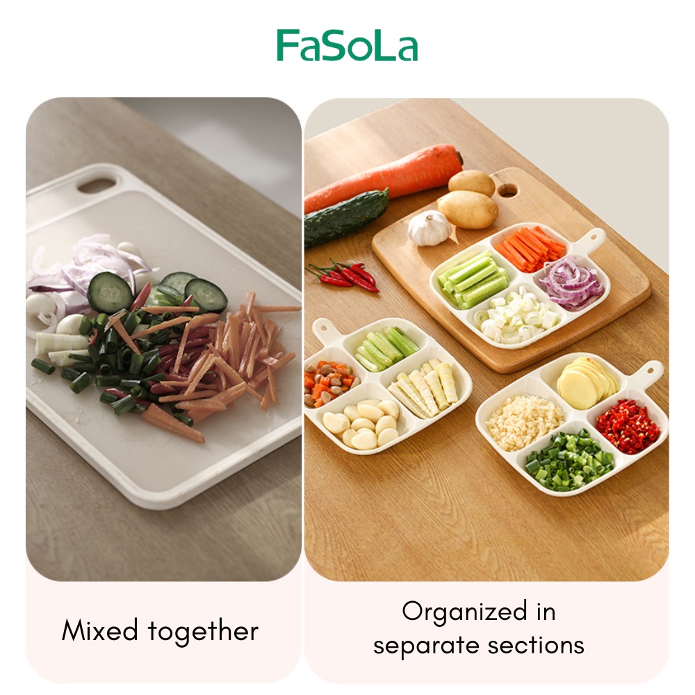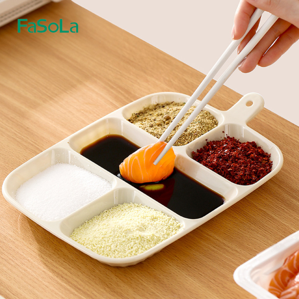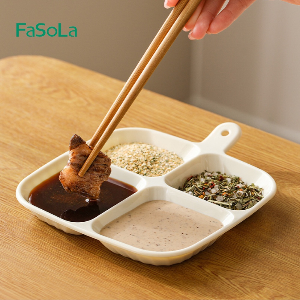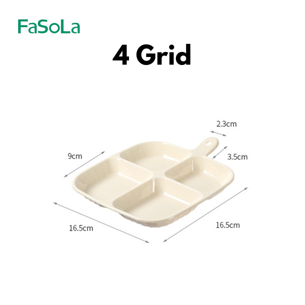 FaSoLa 4 Grids Divided Plate with Handle Square Design Sauce Compartment Plate Pinggan Cicah 分格小盘
