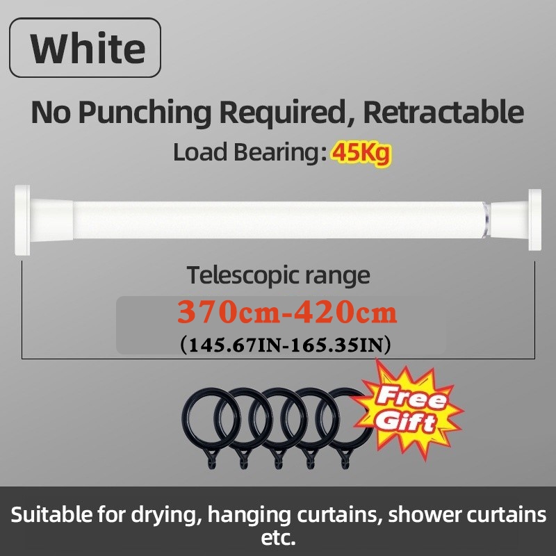 Stainless steel Punch-Free Curtain/ Telescopic tension Rod Adjustable Curtain Rod holder Drying rack Cloth Rail Anti-slip Shower Curtain pole Telescopic Pole Rod Bathroom Towel Rack