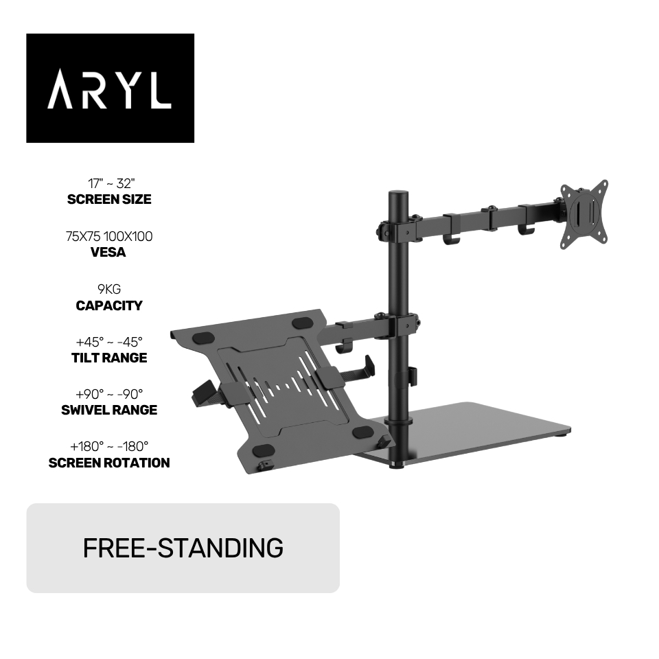 the Aryl™ Premium Monitor Steel Articulating Monitor Stand with Laptop Tray