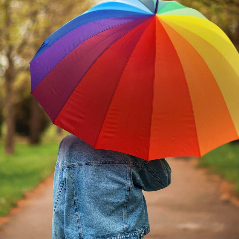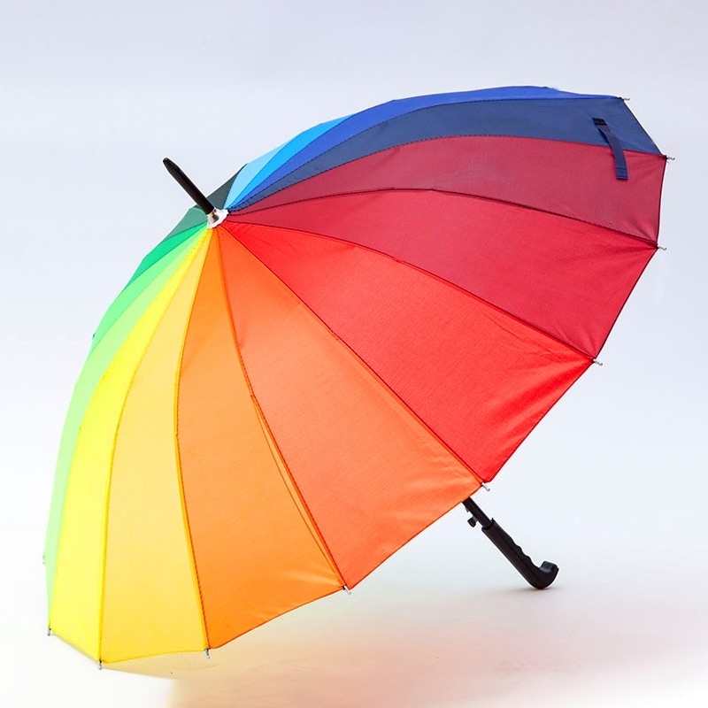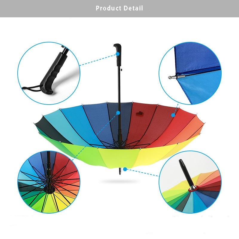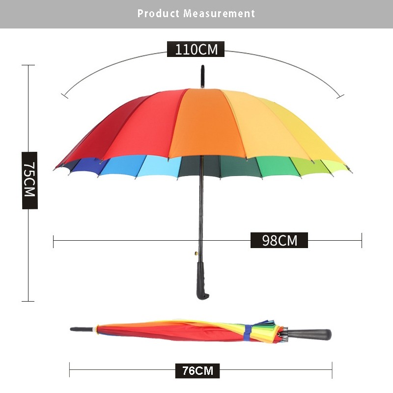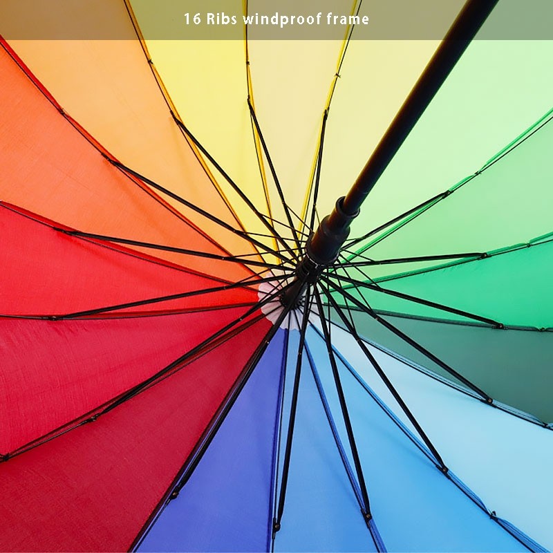 《 𝗨𝗣𝗙𝟱𝟬+ 》Long Handle Rainbow Auto Umbrella 16 Rib Curved Handle Umbrellas Payung Pelangi 彩虹雨伞 NWD