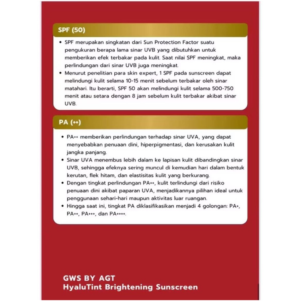 Sunscreen gws spf 50 PA++ original by agt
