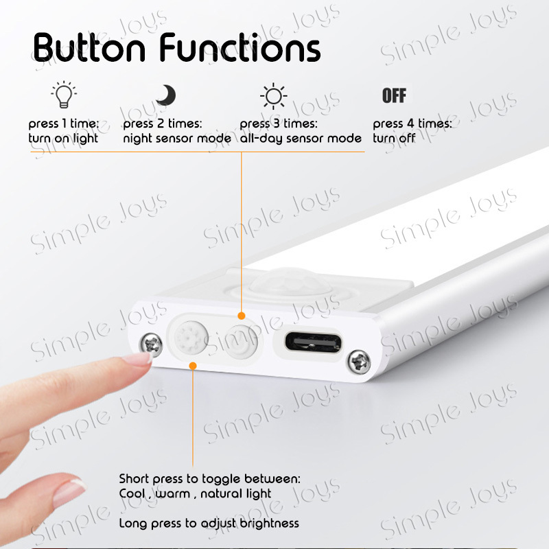 Motion Sensor LED Light Night Lamp USB Rechargeable Built-in Magnet for Cupboard/Stairs/Kitchen/Bed