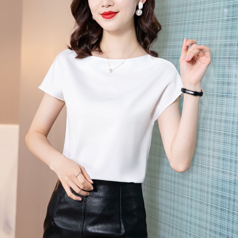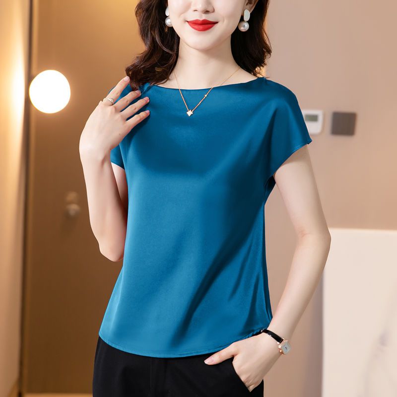 Women's Blouse New Style Ice Silk Satin Shirt Solid Blouse