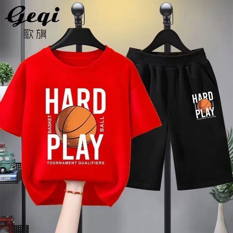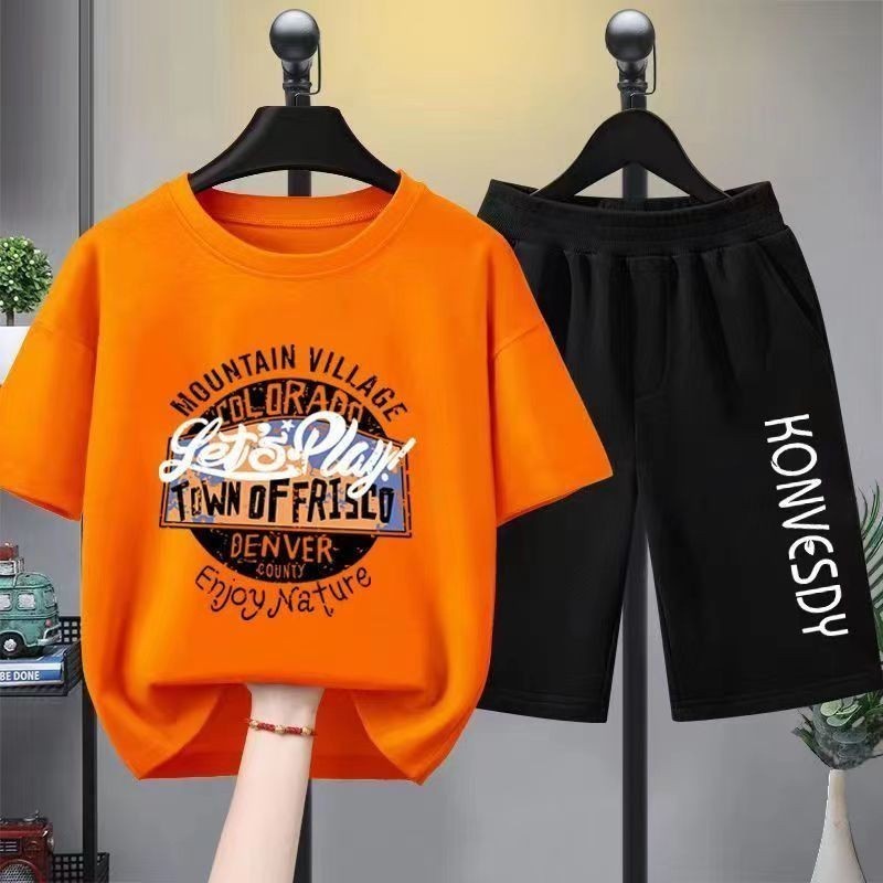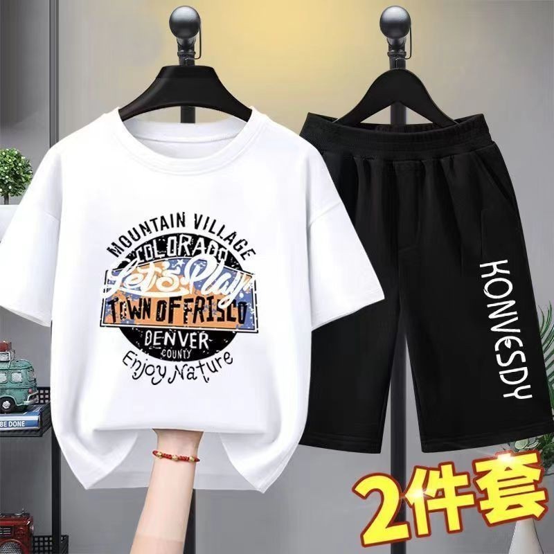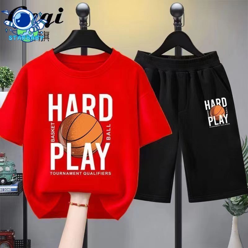 Starbaby boys short sleeves 2024 Summer new 2PCs (top shorts) 3 to 4 to 5 to 6 to 7 to 8 to 9 to 10 to 11 to 12 years short T-shirt for kids boy set kids casual set
