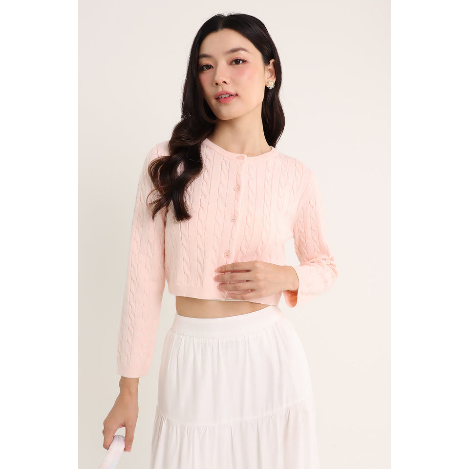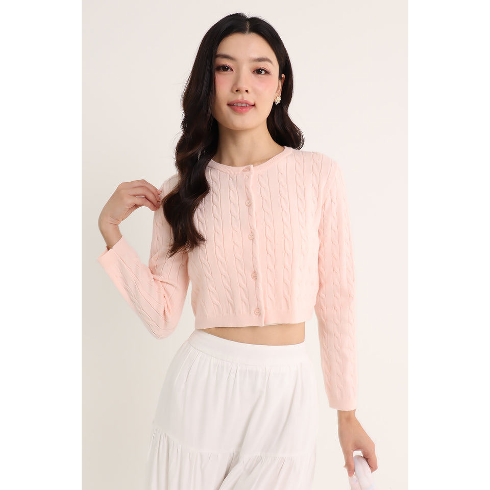 PENNY EMBOSSED KNIT CARDIGAN IN PINK