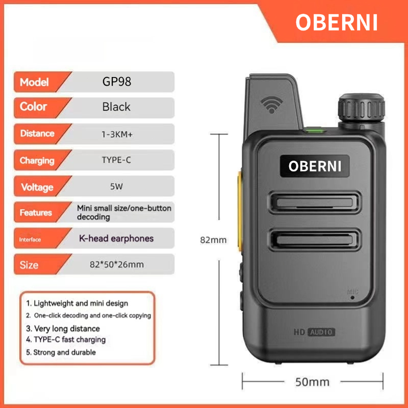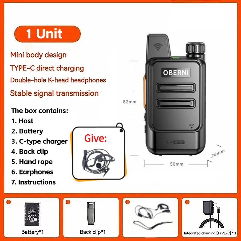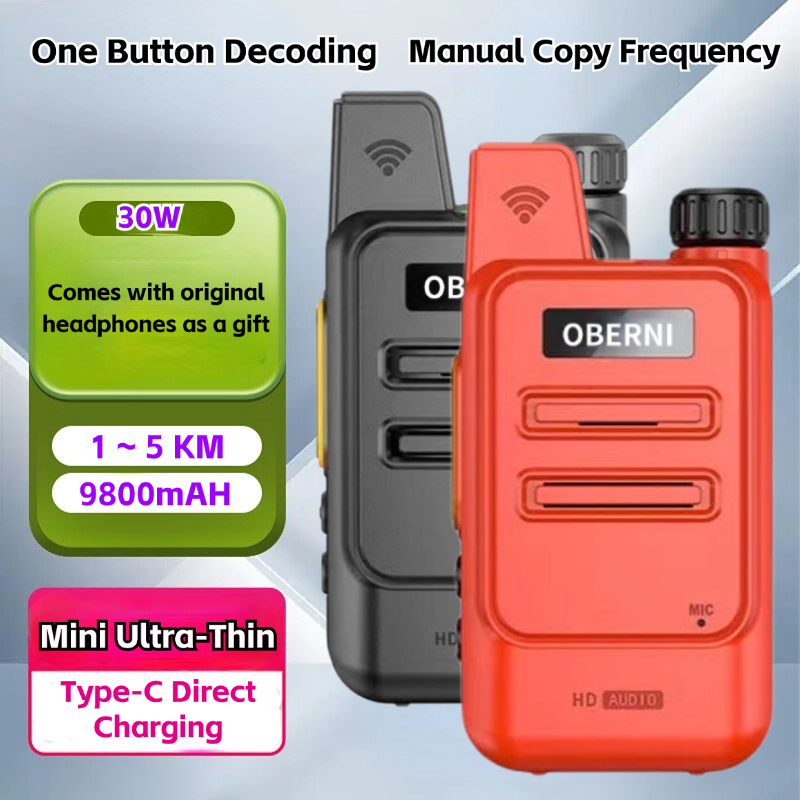 Mini Walkie Talkie 5KM With Headphones Type-C Charging 30W 9800mAH Long Standby Time Wireless Replication Frequency