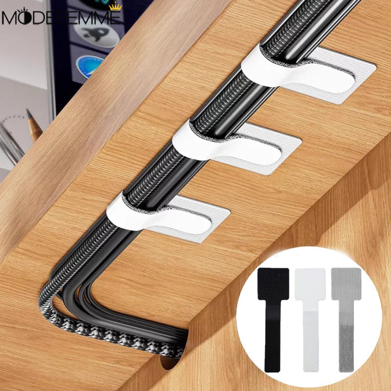 [ Featured ] 10Pcs Cable Ties - Self Adhesive, Adjustable - USB Power Cord Fixer - Reusable Line Organizer - Fastening Straps - Desk Management - For Network Cable, Plug Board