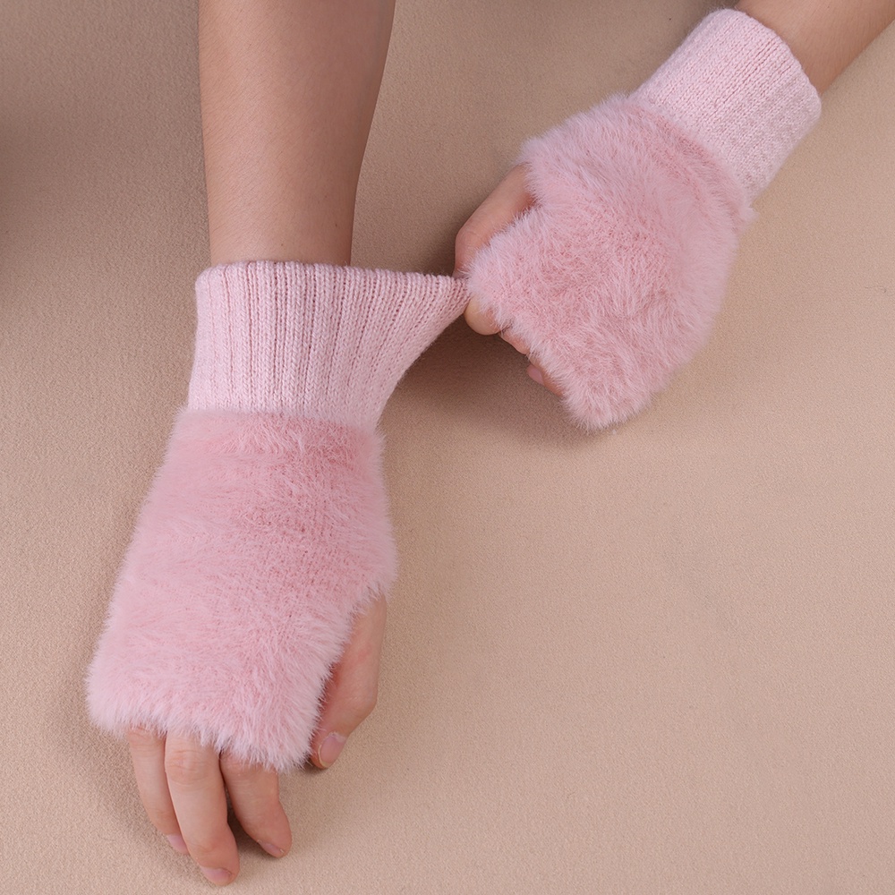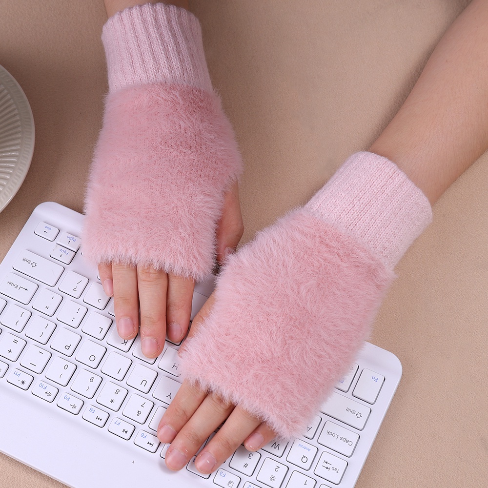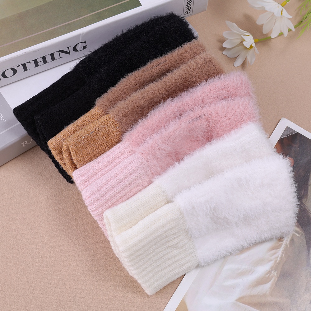 1 Pair Touch Screen Knitted Gloves Outdoor Women Men Soft Thicken Plush Half Finger Gloves Fluffy Warm Fingerless Solid Color Wrist Mittens Cute Fashion Comfortable Autumn Winter