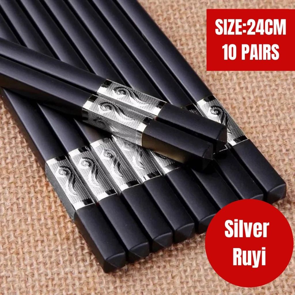 10 Pairs Gold and Silver Chopsticks Classic Series Anti-Bacteria Alloy Chopsticks - VIXORA