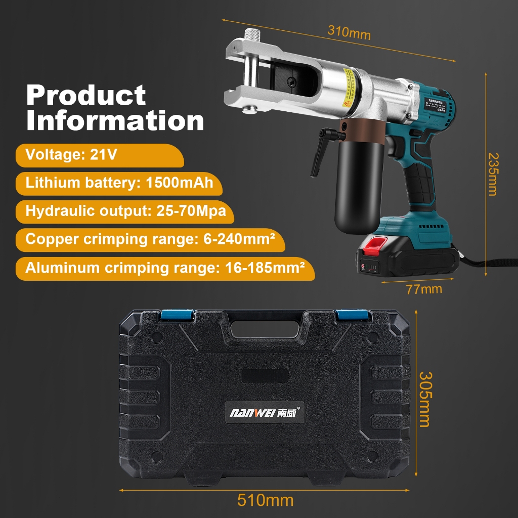 Electric Hydraulic Crimping Pliers 21V Rechargeable Crimping Pliers Copper/aluminum Cable Crimping Tool 16-240mm²