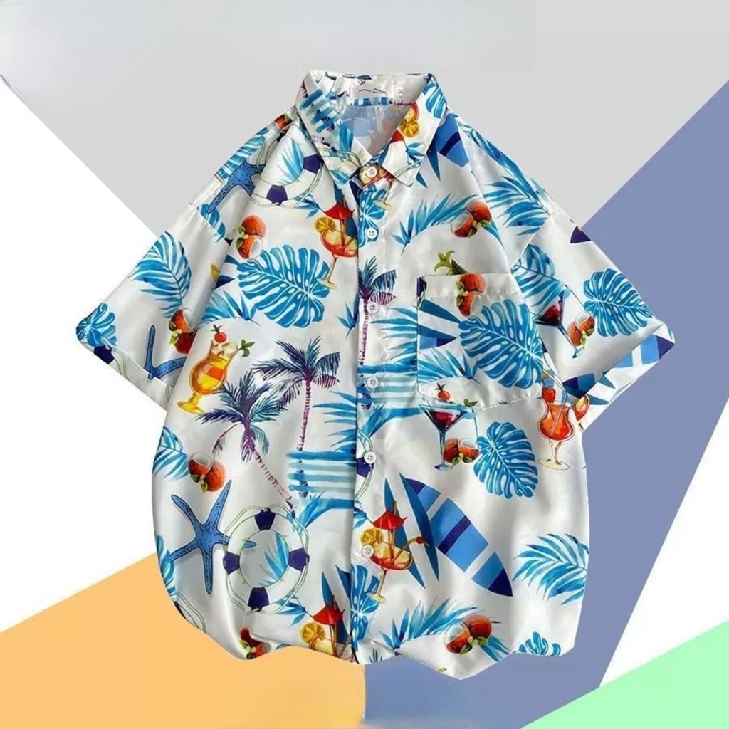 Hot Hawaii Hawaiian Shirt Floral Pattern Songkran Outfit Beach Loose Fit Suitable For All Men And Women.