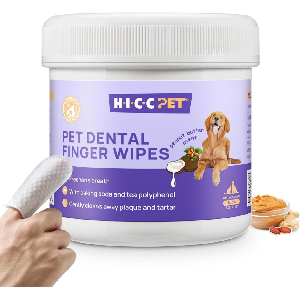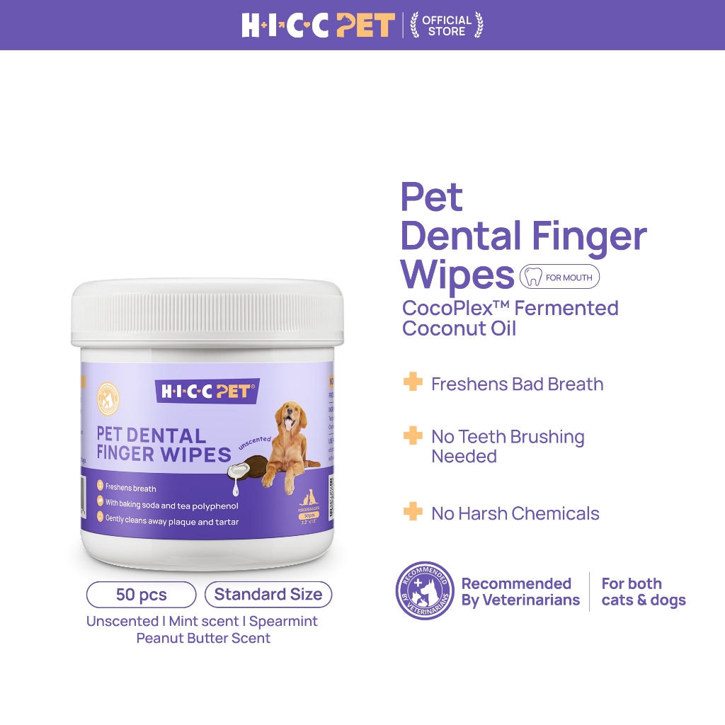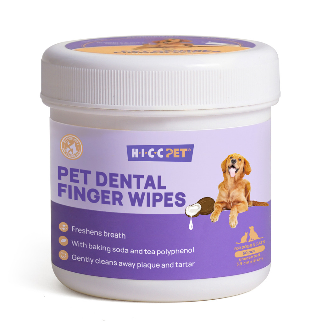 【BEST SELLING】HICC PET Dental Finger Wipes Remove Bad Breath Gentle Teeth Clean Wipes Cat Dog 50pcs