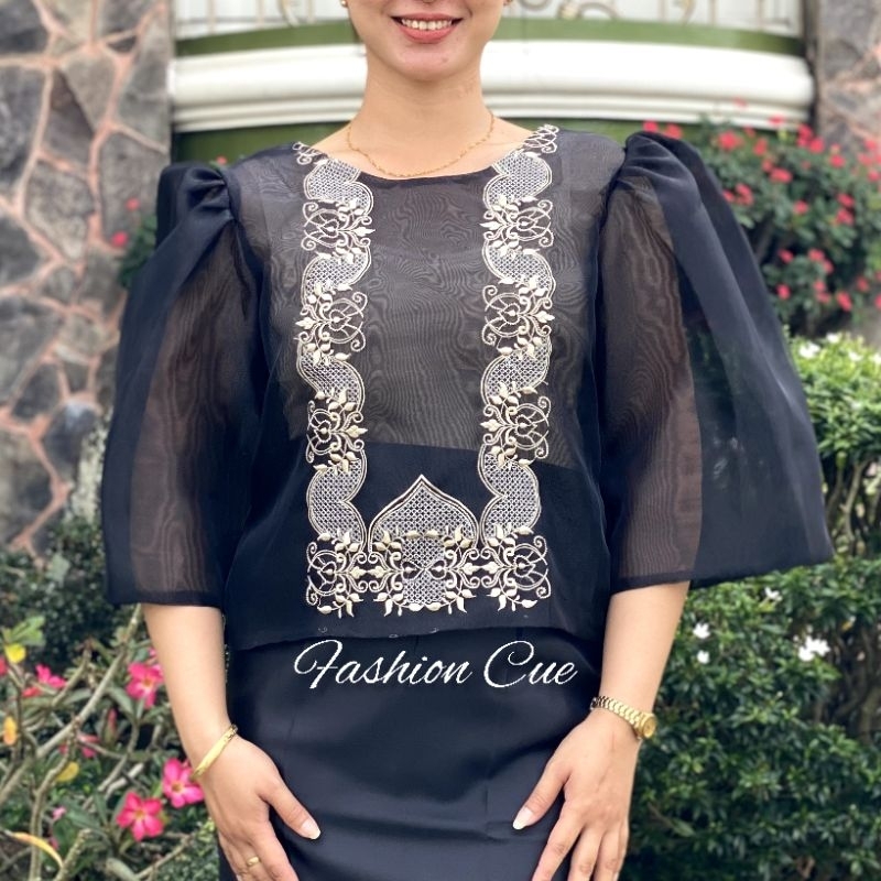 Maria Clara Ibara Mocha / Black Kimona Top Organza Kebaya Top