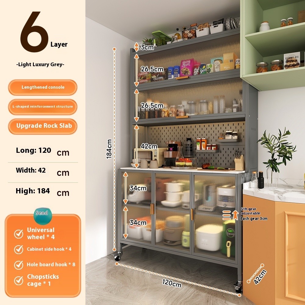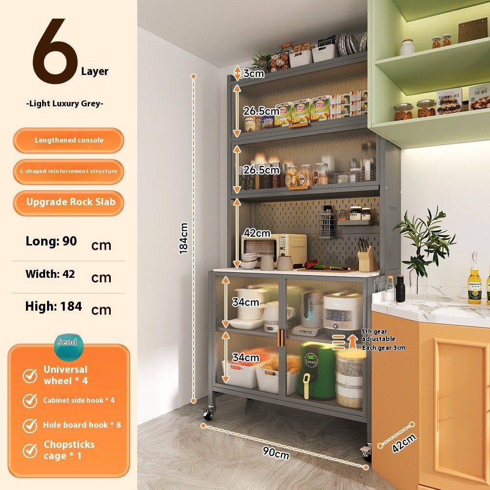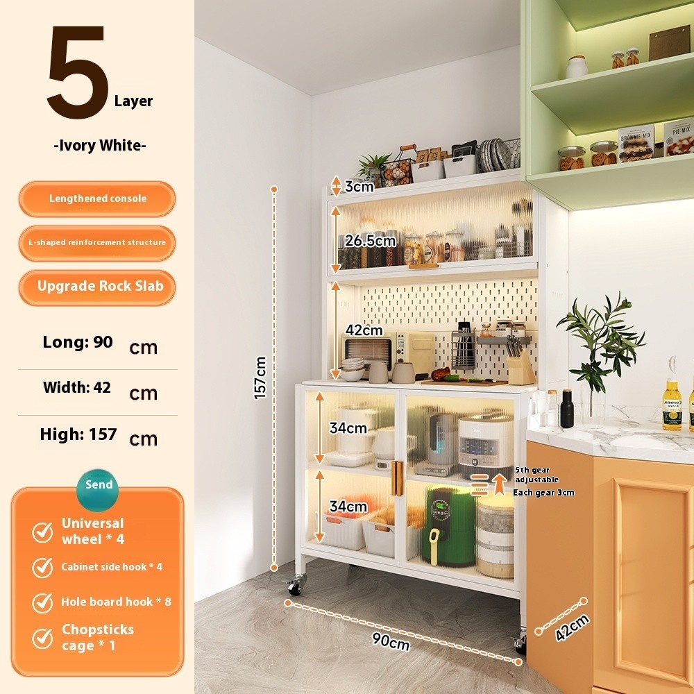Kitchen Cabinet Rock Kitchen Board Shelf Dining Cabinet Floor To Ceiling Multi Layer Storage Microwave Oven Multifunctional