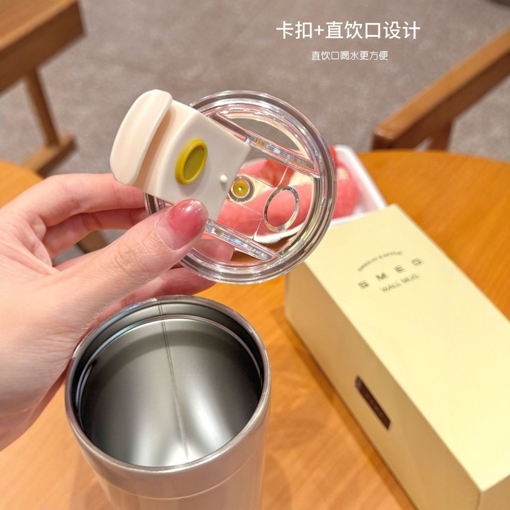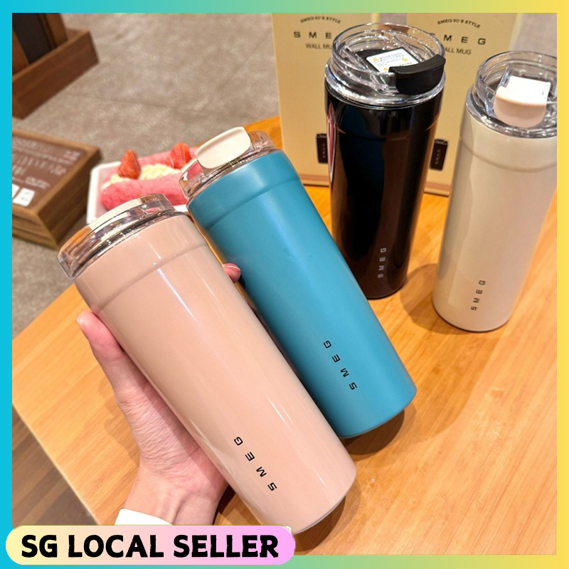 SG STOCK SMEG Cup 550ML Milk Coffee Cup White Stainless Steel Hot And Cold Car Insulated Mug