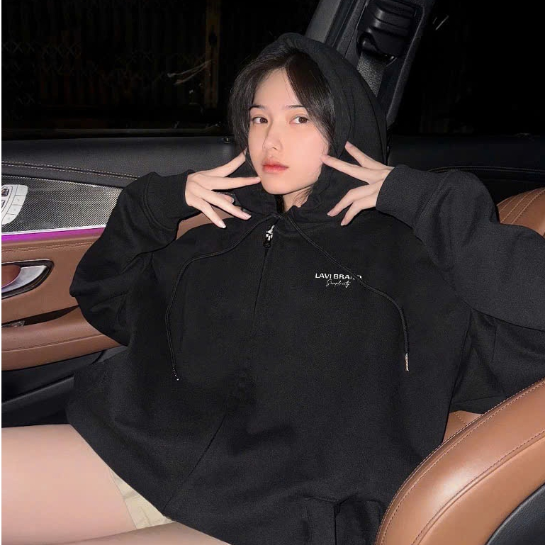 Lavi Studio Logo Zip Hoodie Loose Form Cotton Fleece For Men And Women Local Brand