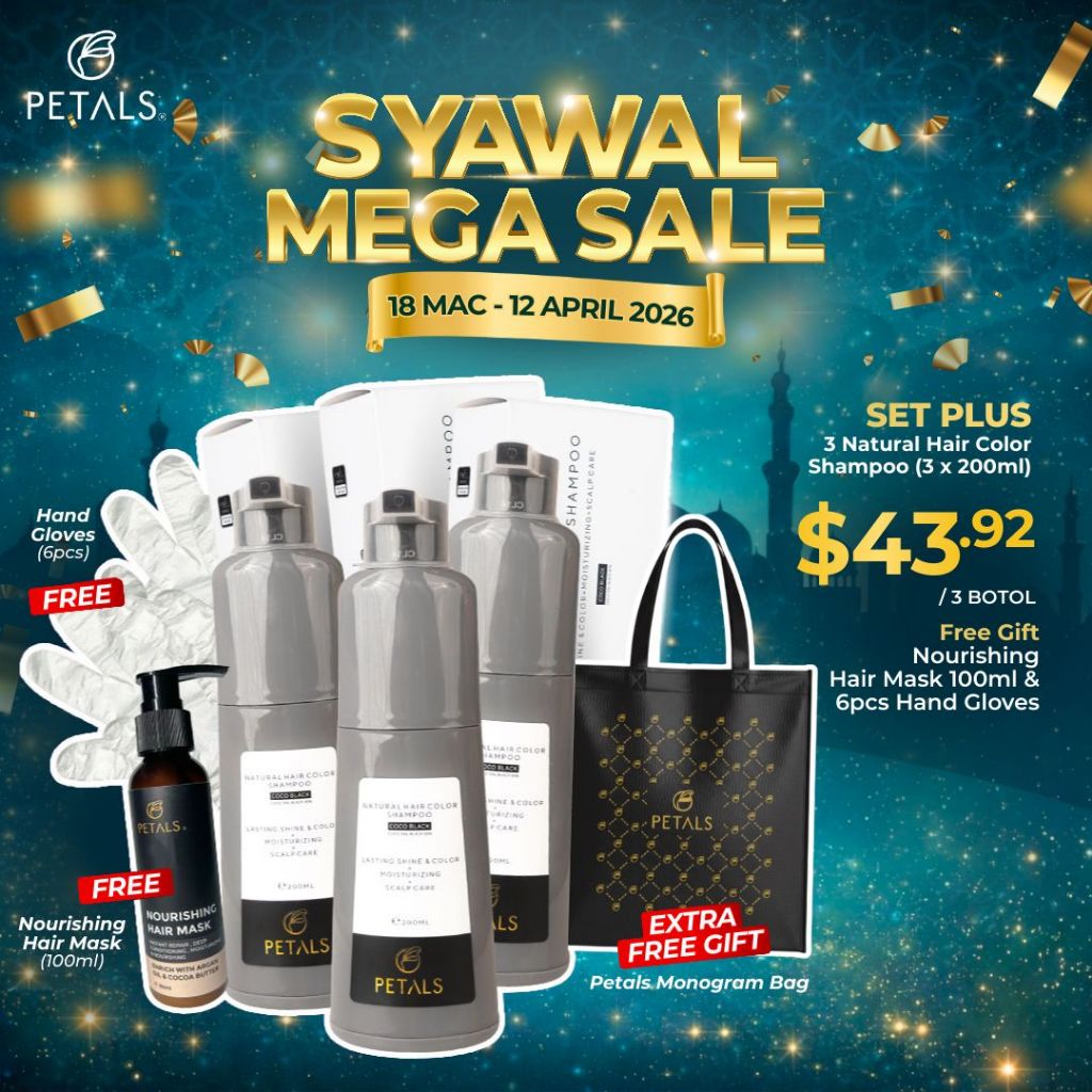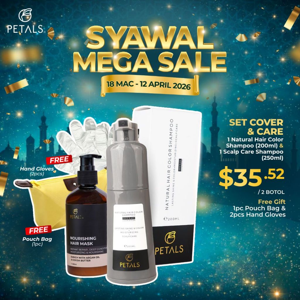 [SG] Petals HAIR COLOR SHAMPOO Uban Halal Pewarna Rambut Telus Air Hitamkan Rambut Beruban Natural