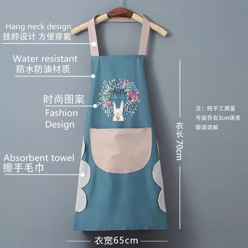 Kitchen Apron Hand Wiping🔥Ready Stock🔥Waterproof Neck Hanging Pocket Cooking Baking 擦手围裙