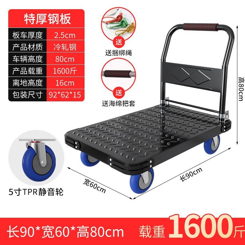 Foldable Carrier Silent Big Capacity Pull Goods Can Adjust Height Flatbed Steel Plate Trolley Tools Shopping Cart
