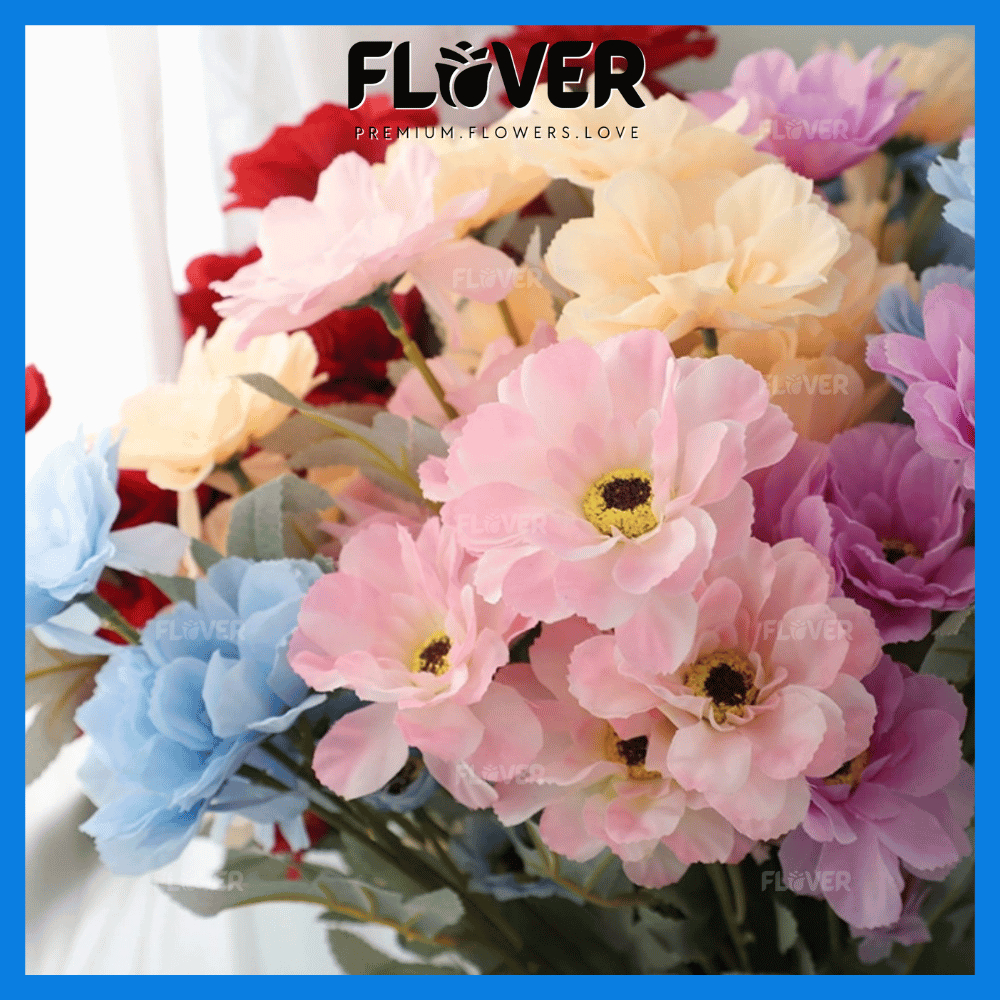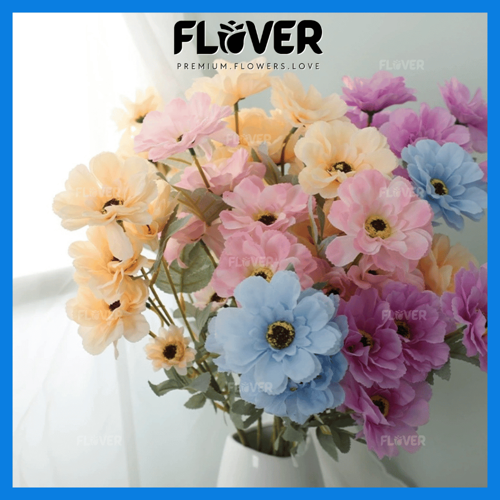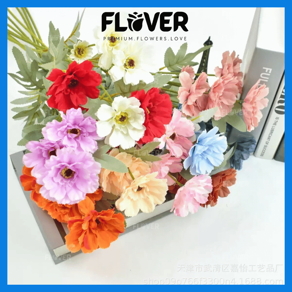 [1stalk] 6 Heads Zinnia Artificial Flower | Zinnia Bunga Hiasan Daisy | Wedding Decor | Home Decoration - Flover