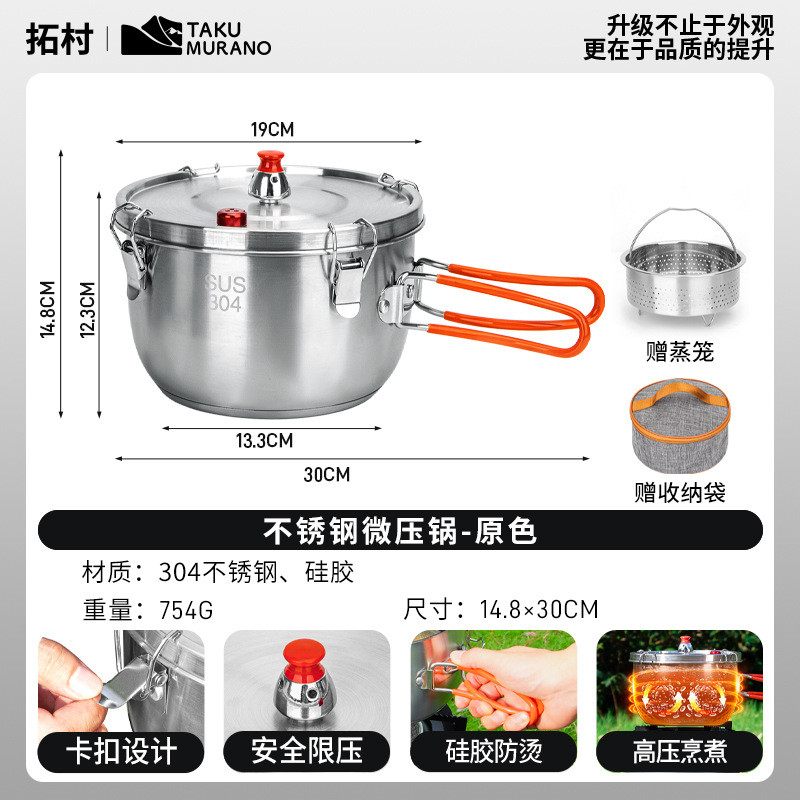 Tuocun Outdoor Multi-Functional Steamer Portable Safe Explosion-Proof Pressure Cooker Camping Cookware Stainless Steel Micro Pressure Cooker