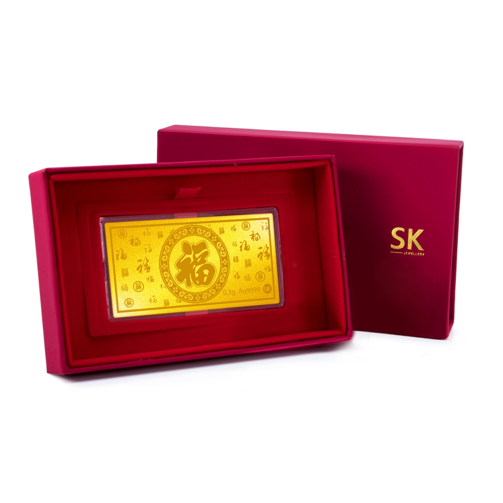 SK Jewellery Hundred Blessing 999 Pure Gold Bar 0.3g