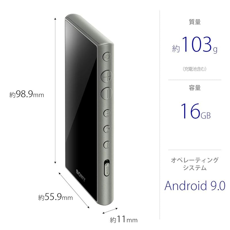 《JAPAN》★Sony Walkman 16GB A Series NW-A105: High-Res / MP3 Player / Bluetooth / Android / microSD / Touchscreen / 26-hour Playback / 360 Reality Audio - Ash Green NW-A105 GM