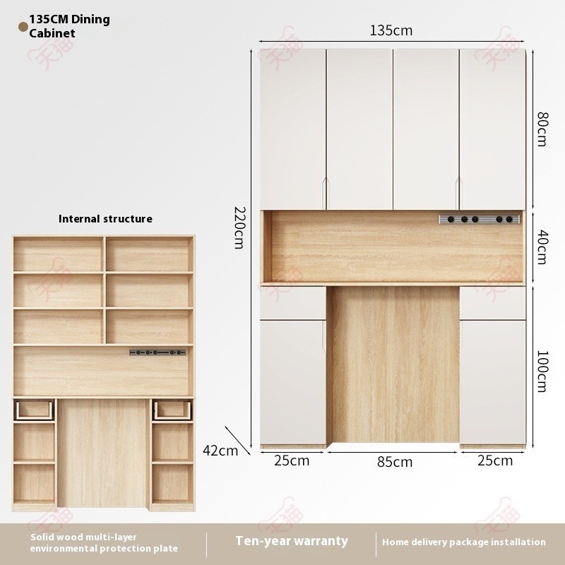 Minimalist Linzhiyong3.Sg Dining Table Wood Solid Dining Cabinet Integrated Against The Wall Living Room Table Embedded High Small Sized Storage Wine