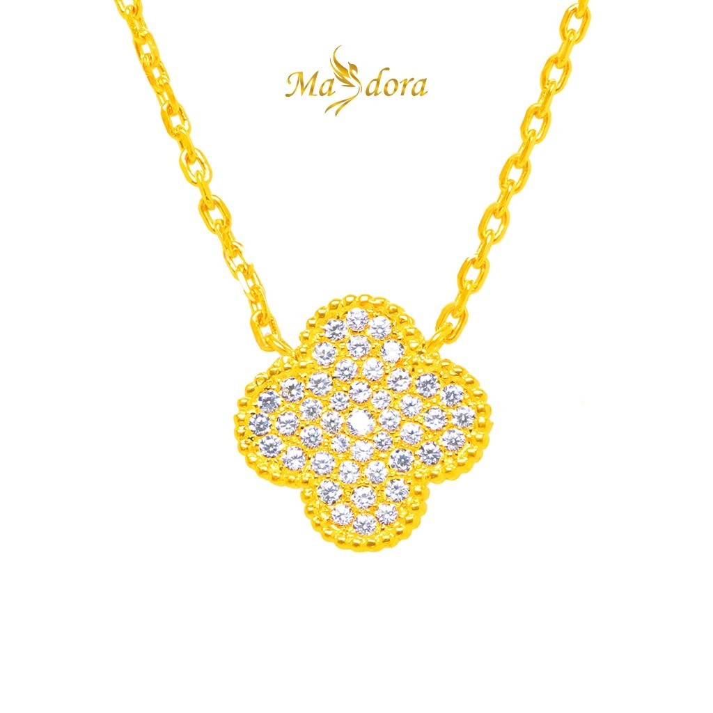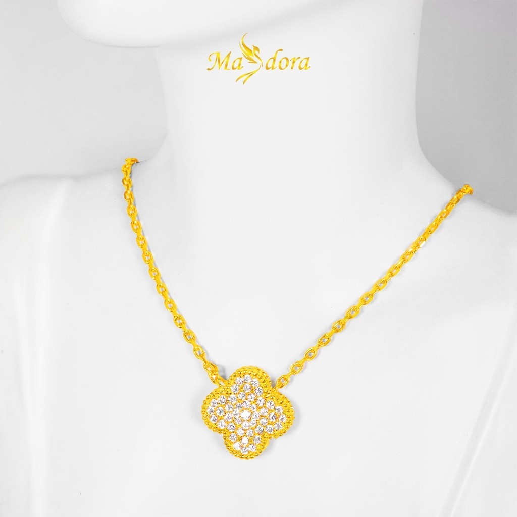 MASDORA 916 Gold Necklace Rantai Leher Emas - Sparkling Clover (EMAS 916/22K)