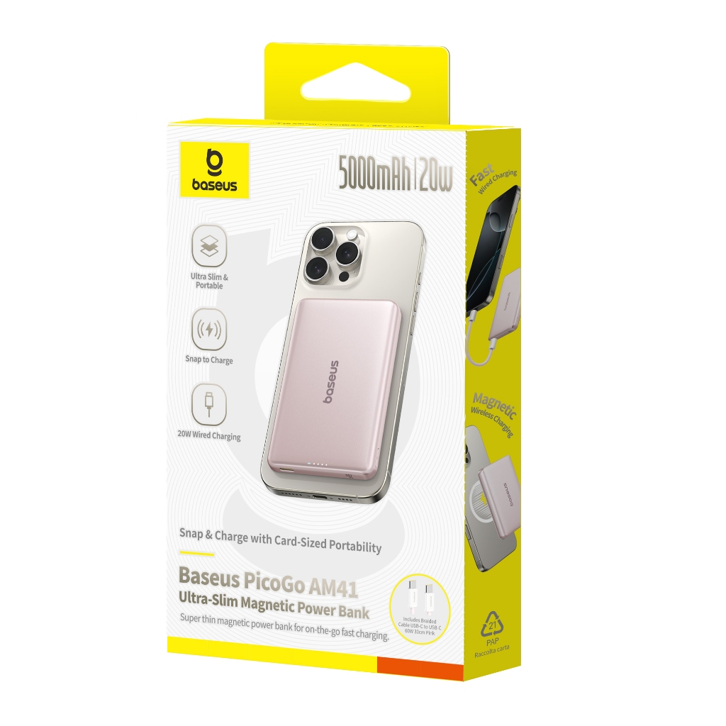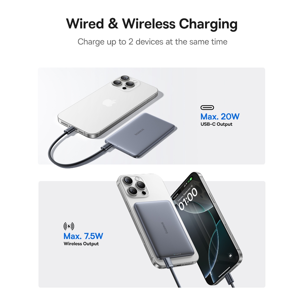 【CCC Certified Power Bank】Baseus 3C 5000mAh 20W Ultra-Slim Magnetic Power Bank Portable&Mini with Metal & Silicone Texture