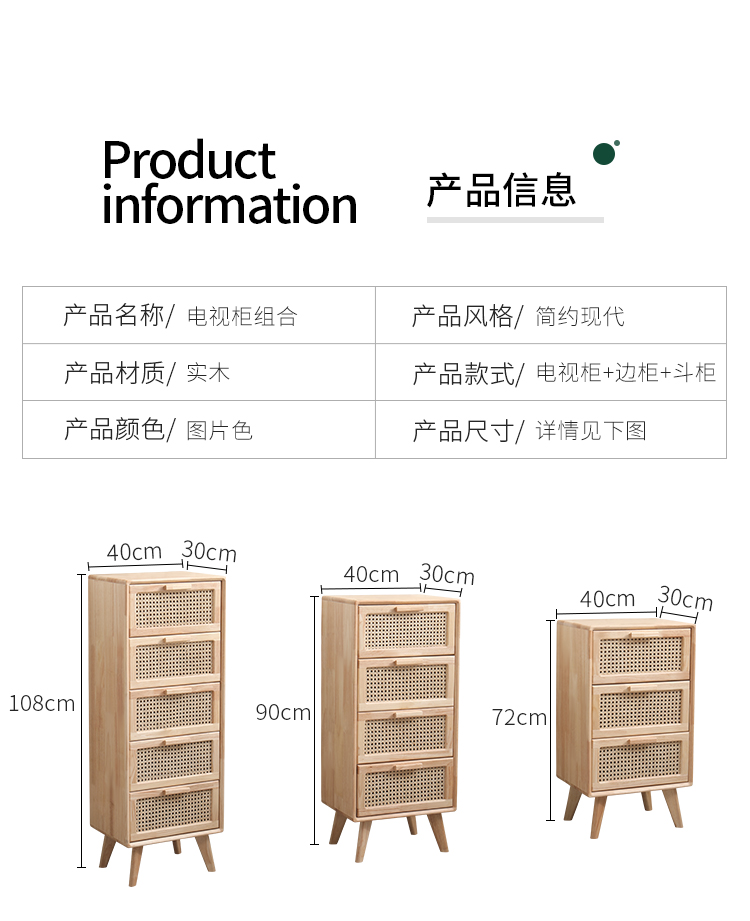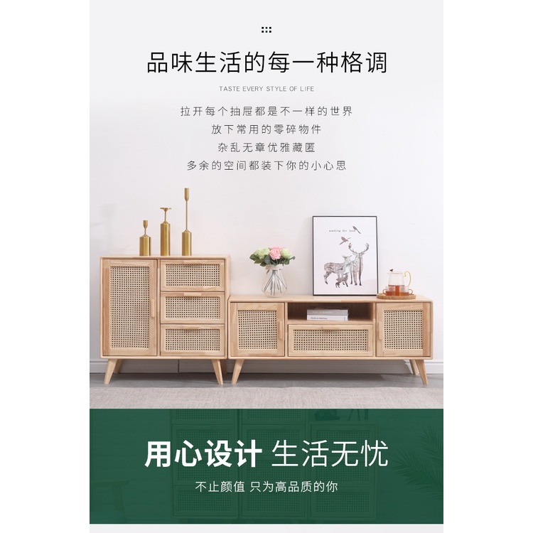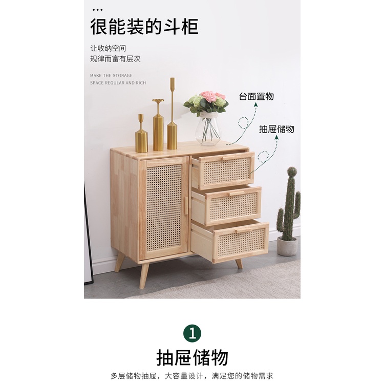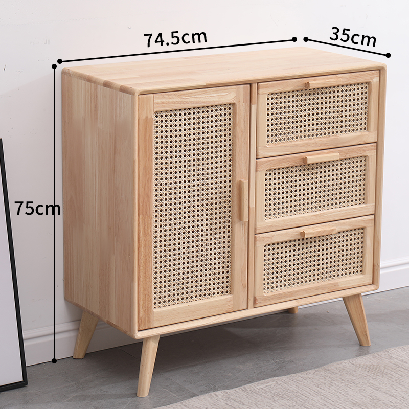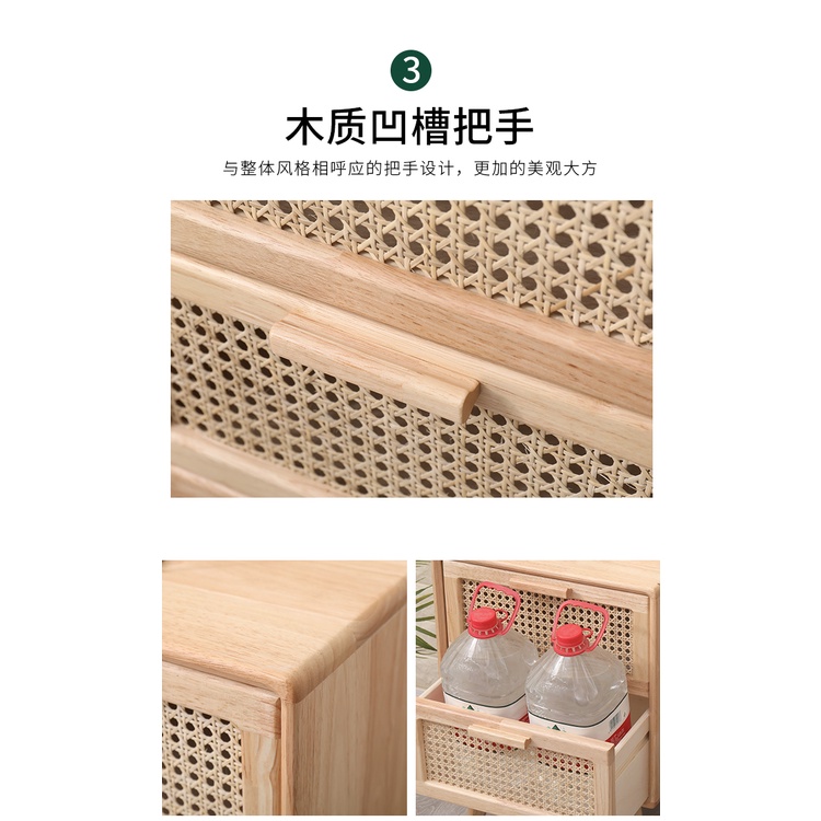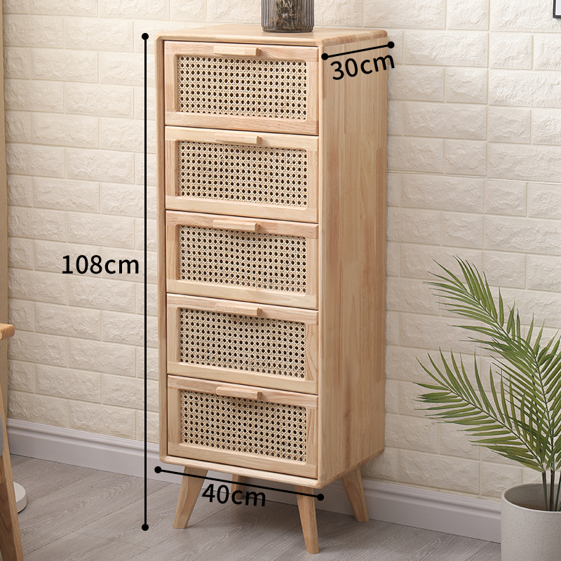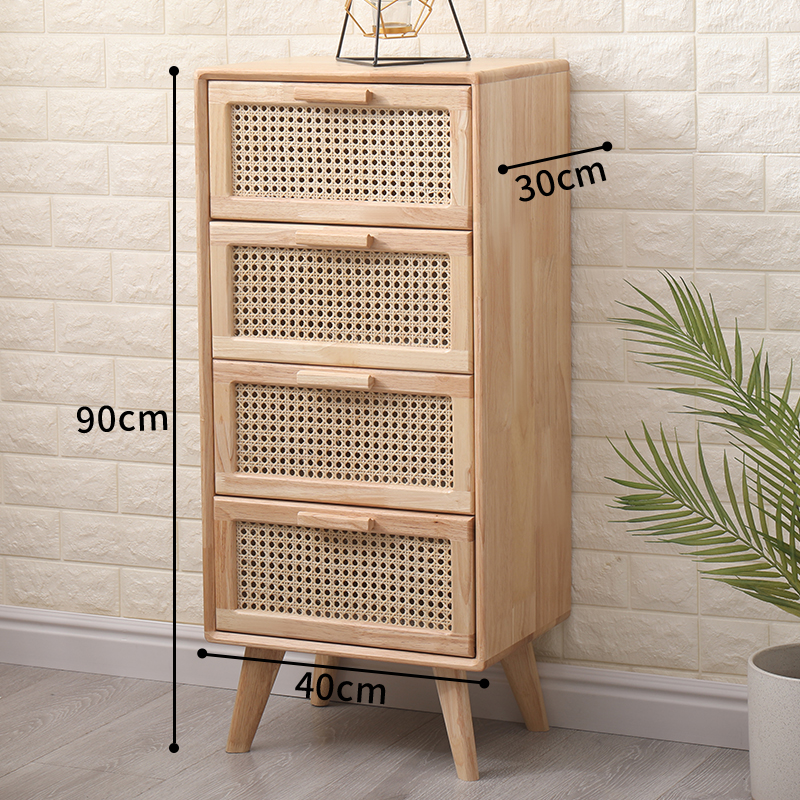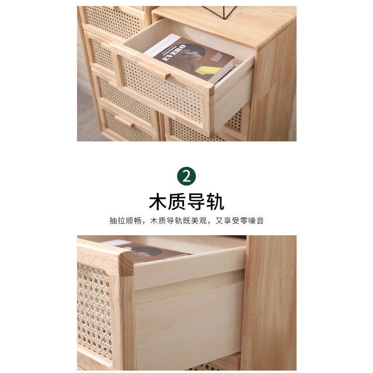 LRJ Storage Cabinet Solid Wood Simple Modern Storage Light Bedroom Chest of Drawers Cabinet Special Rattan Weaving