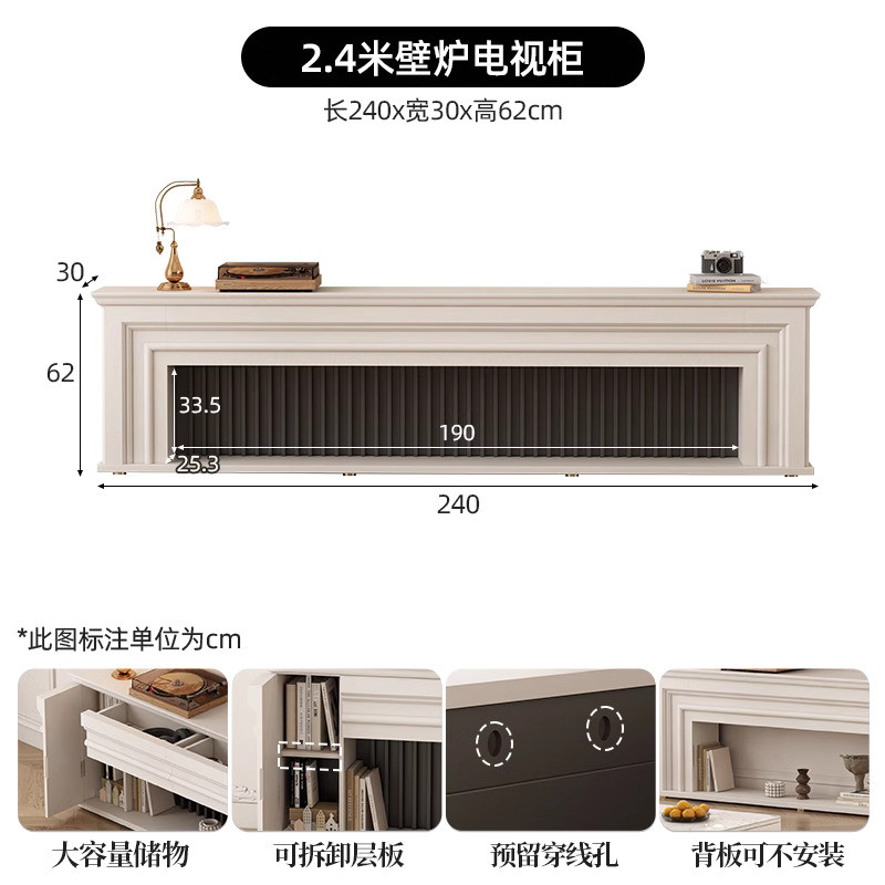 GT TV Console Cabinet American TV 60cm High Living Room French Fireplace Decoration Cabinet Ultra-thin Cream Wind Floor Standing Cabinet