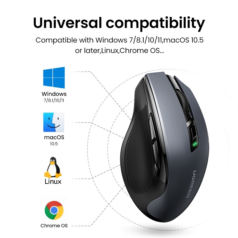 UGREEN Wireless Bluetooth Ergonomic Mouse | Silent Click Mouse | 4000 DPI