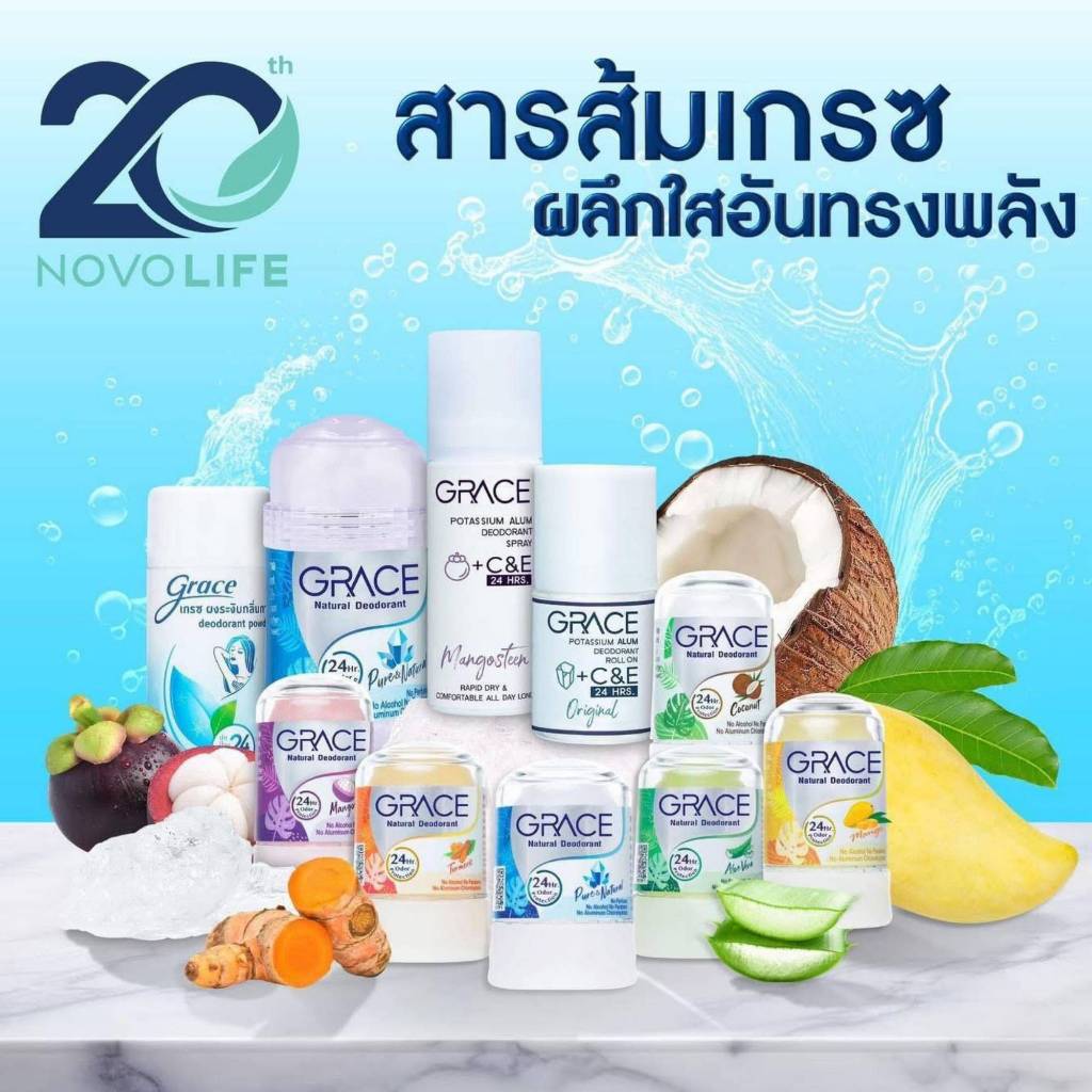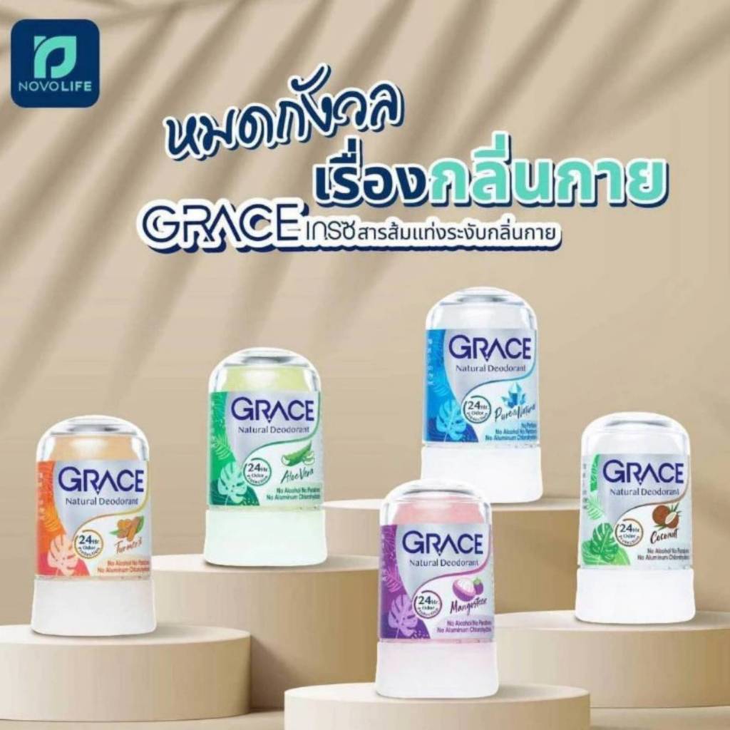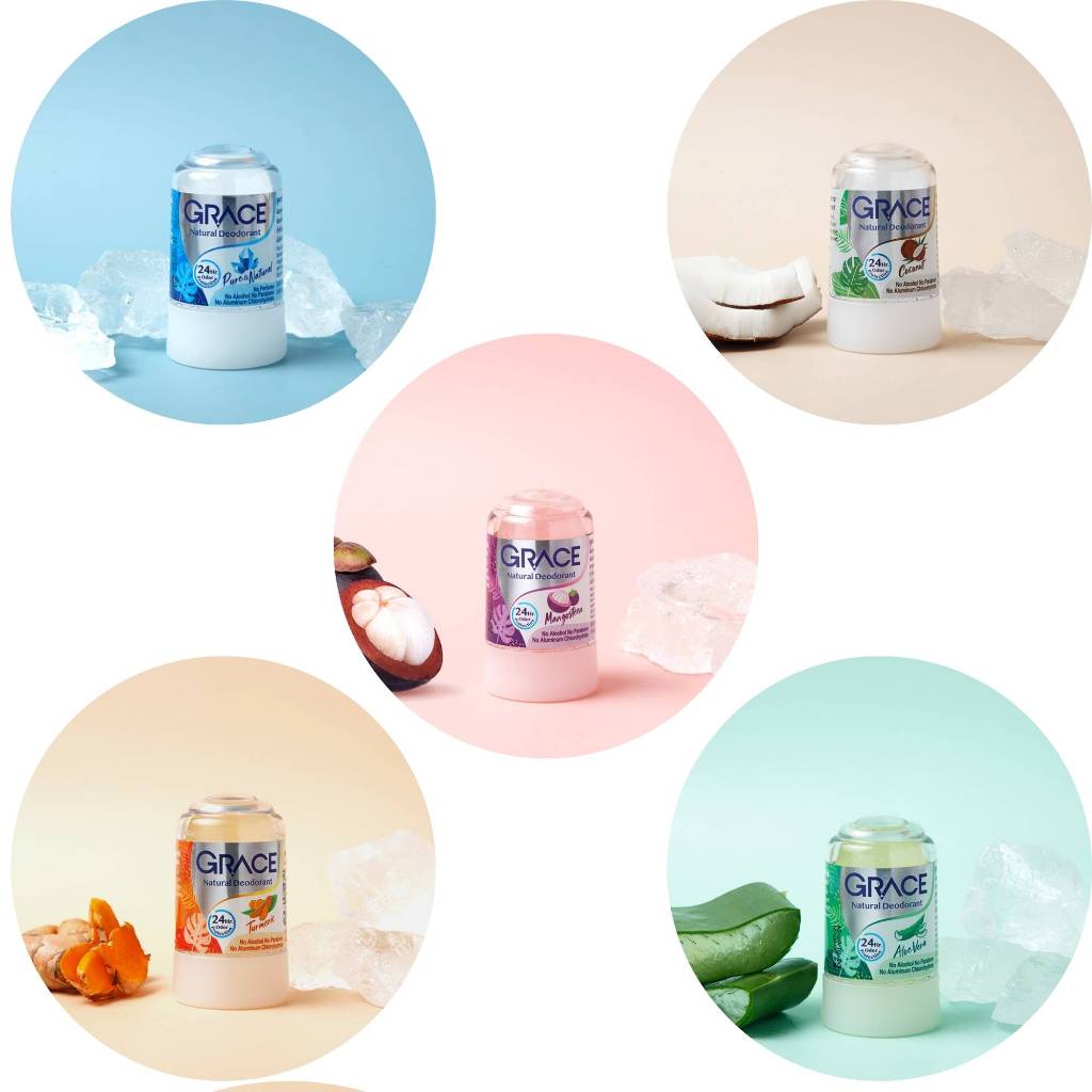 Thailand GRACE Natural Mineral Deodorant Stone Alum Crystal Aluminum-Free Alcohol-Free Balm Deodor