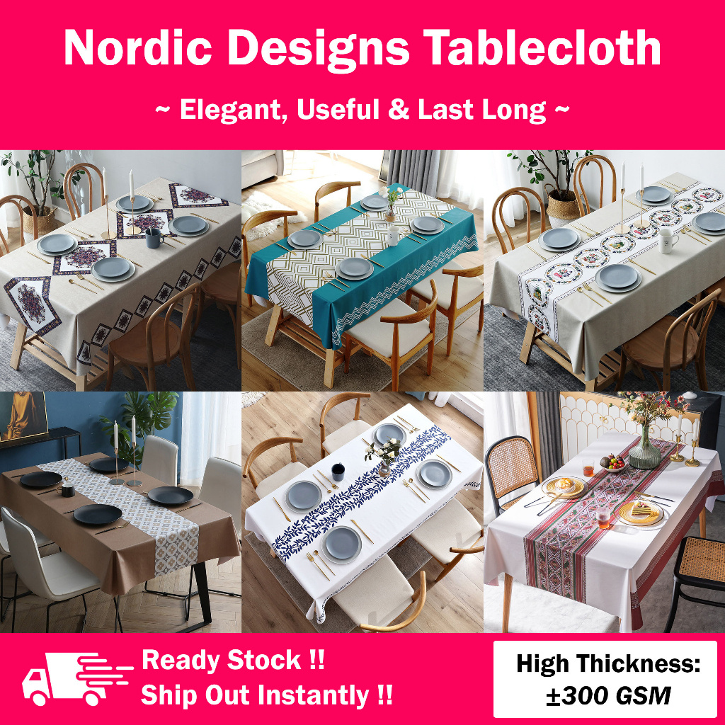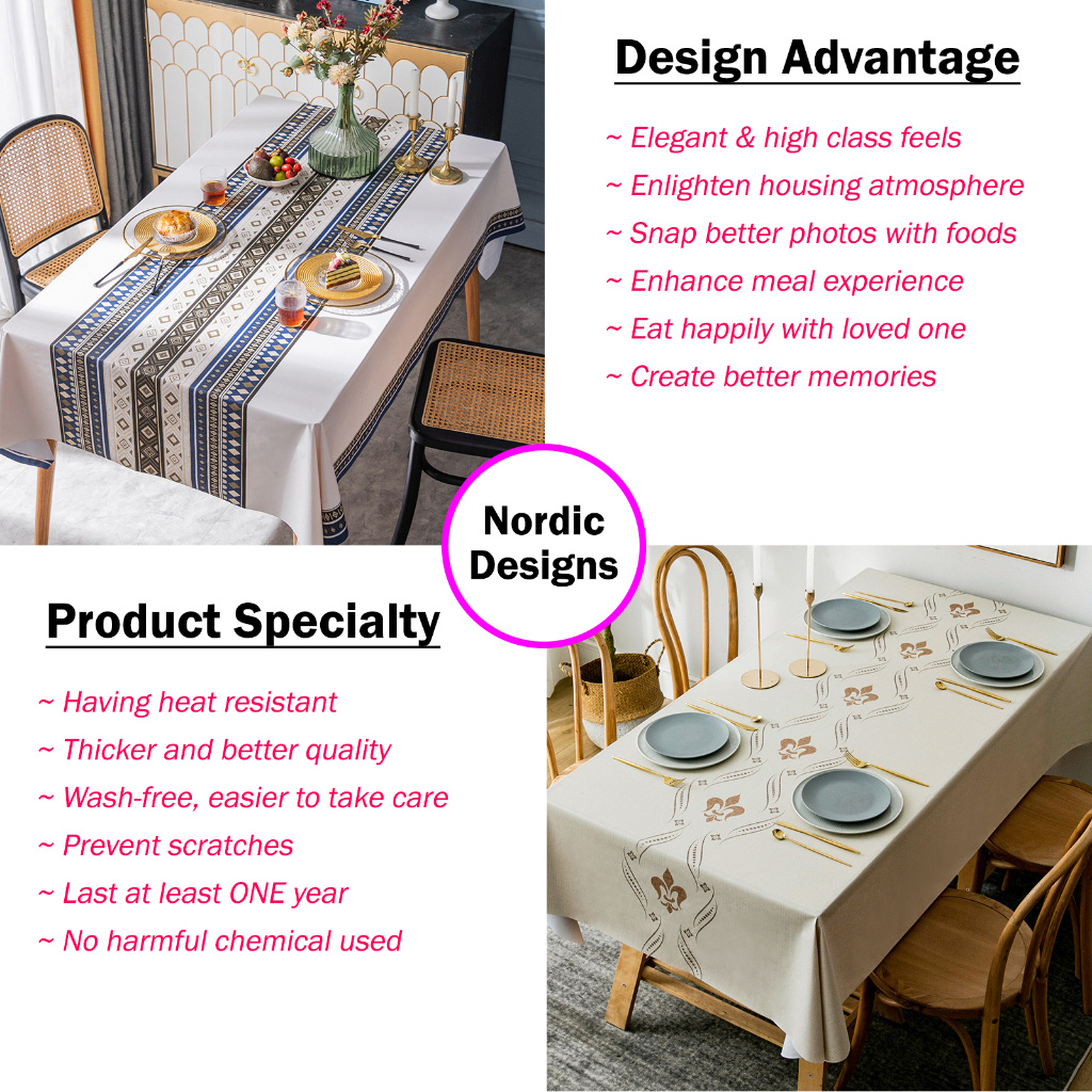 🔥 Heat Resistant 🔥 Nordic Style PVC Tablecloth Table Cover Kain Meja Europe Style Tablecloth 欧美桌布 PVC桌布