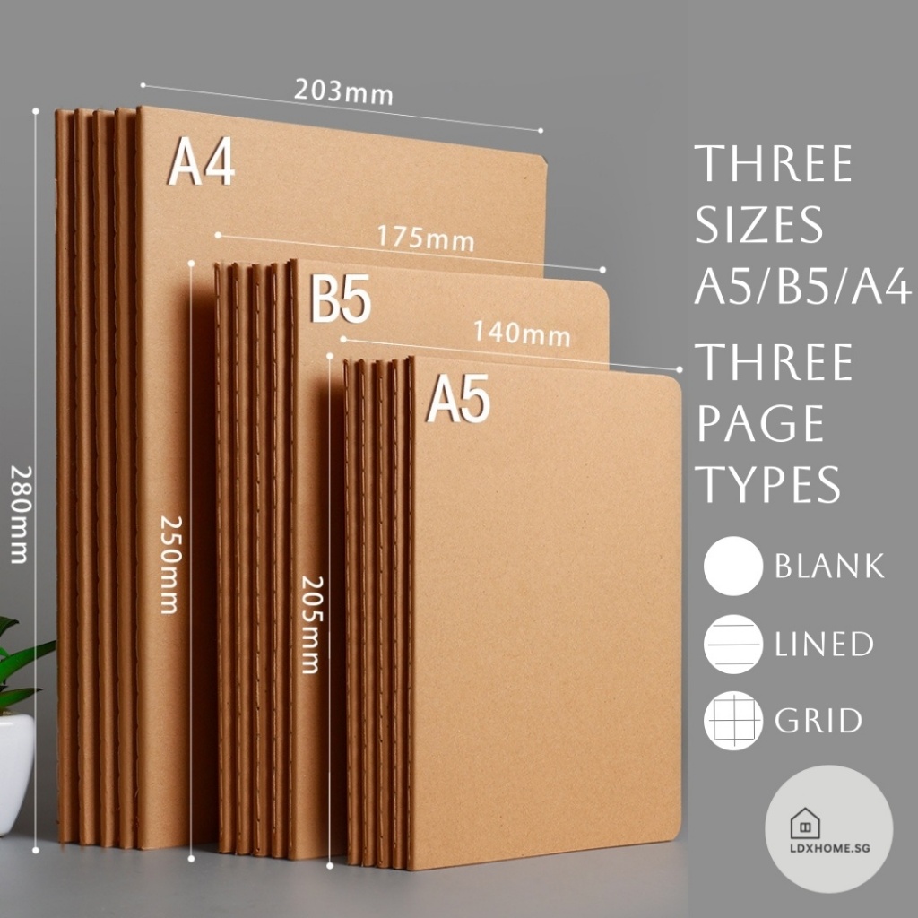 A5, B5, A4 Minimalist Leather Notebook,Exercise Book, Lined, Grid, Blank, 80-GSM, String-Bound