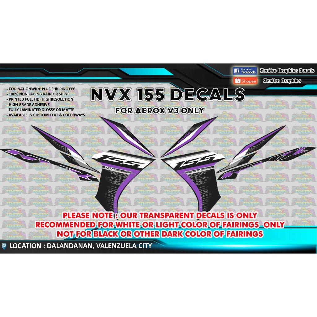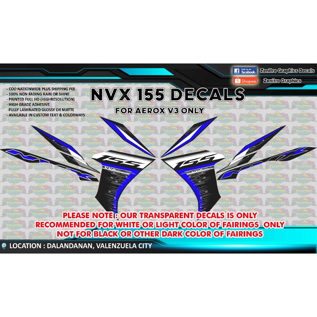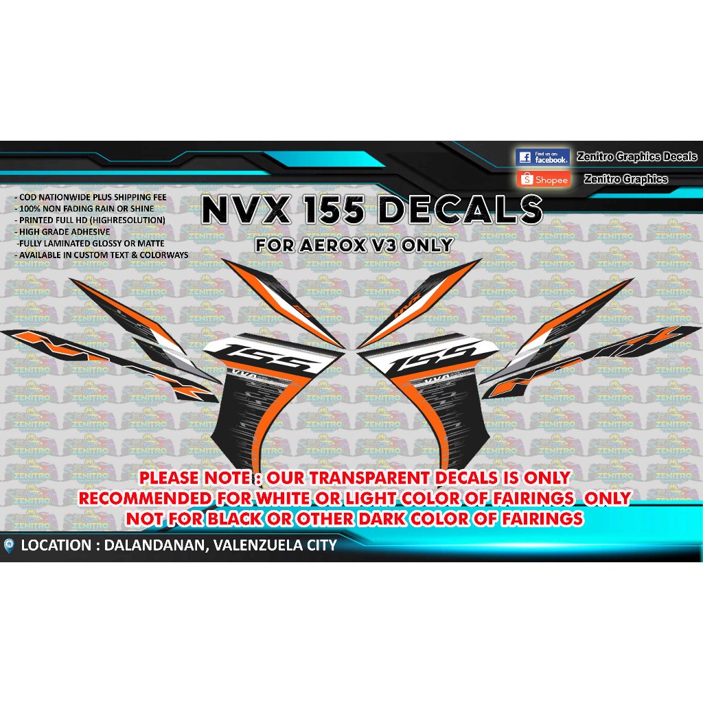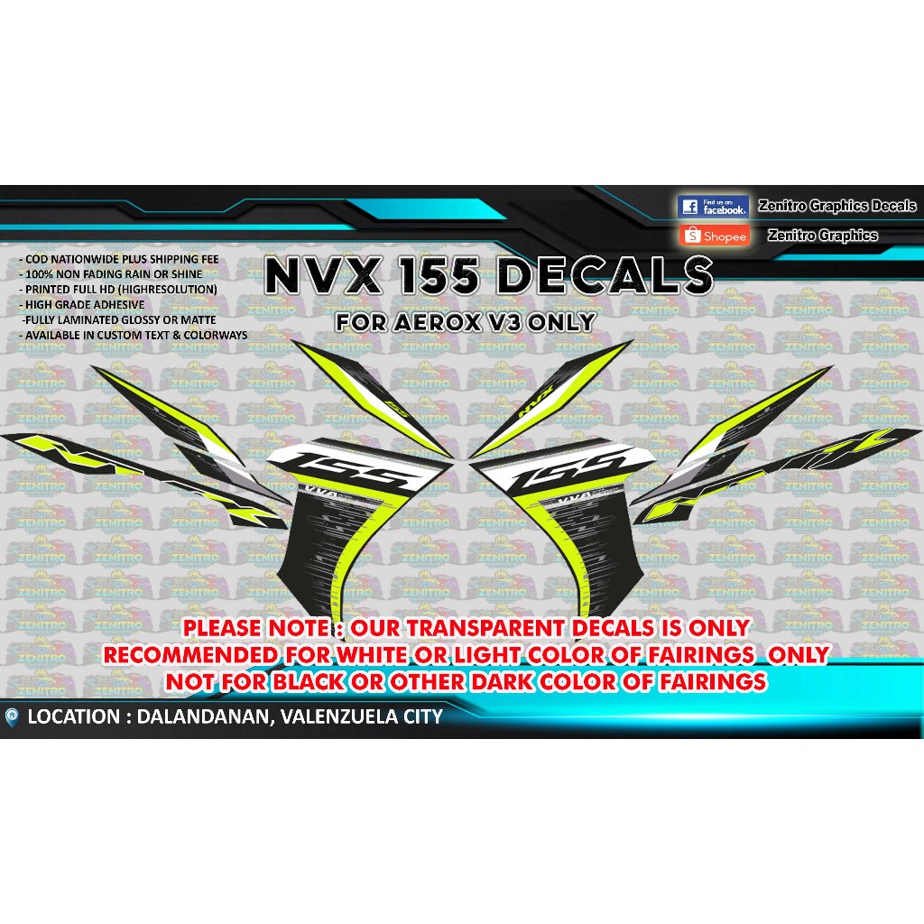 NVX 155 DECALS FOR AEROX V3 ONLY ( ZENITRO GRAPHICS DECALS )