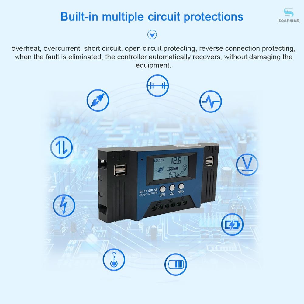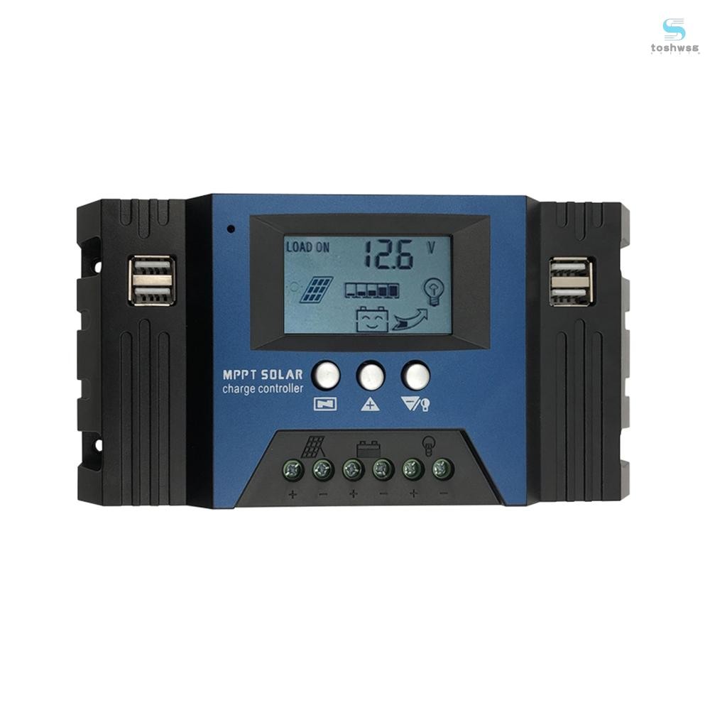 40A MPPT Solar Charge Controller 12/24V Auto Focus Solar Panel Controller Battery Intelligent Regulator with 4 USB Output Adjustable Parameter LCD Display Timer Setting