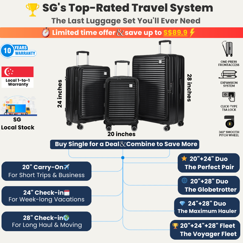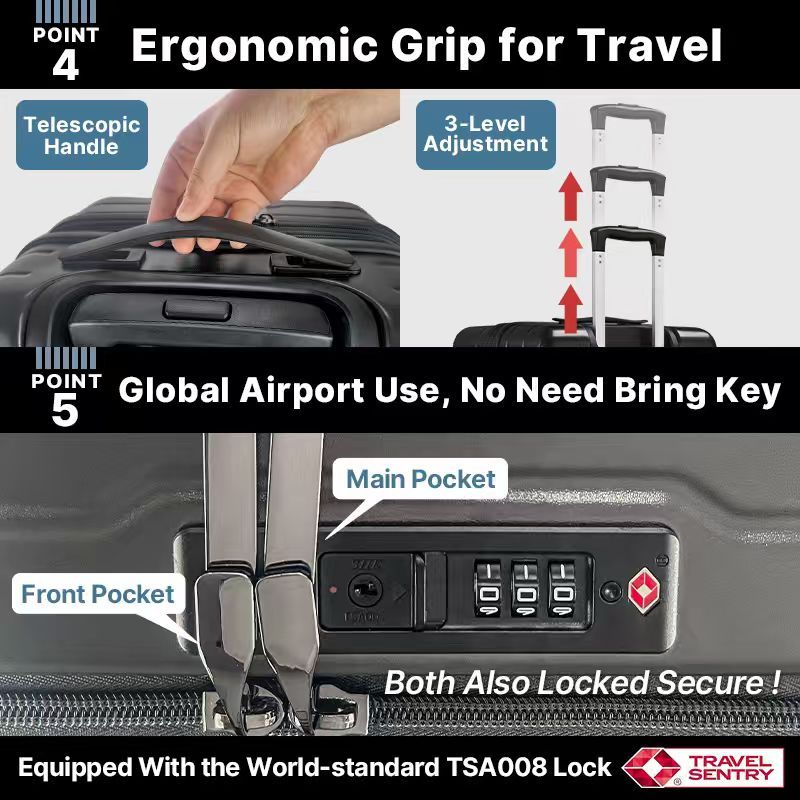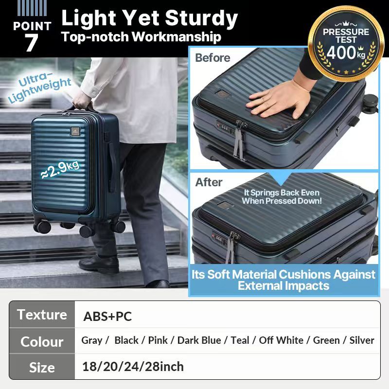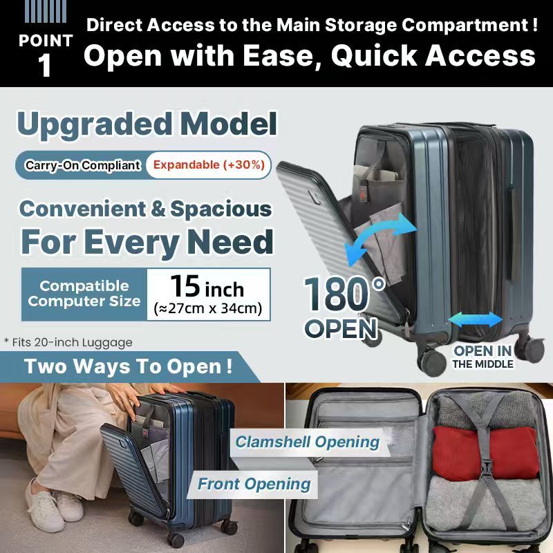 【New Release!!】 Cabin Luggage 20/24/28 Inch Front Open Luggage Top with Laptop Compartment TSA Lock Lightweight 行李箱