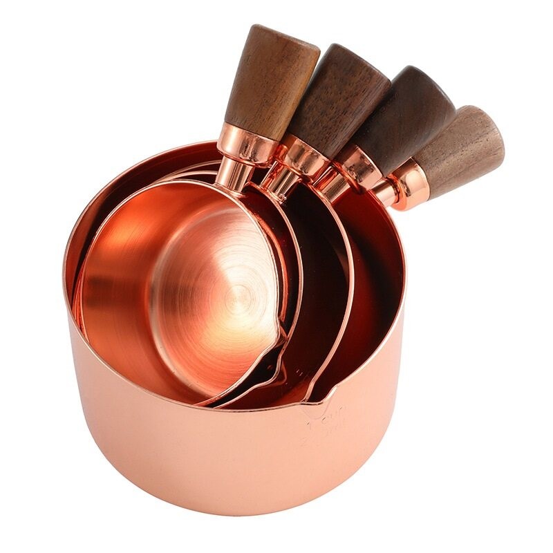 60/80/125/250ml Mini Sauce Pan, Rose Gold Stainless Steel Butter Warmer with Pour Spout and Wooden Handle for Home Kitchen Cooking Ware