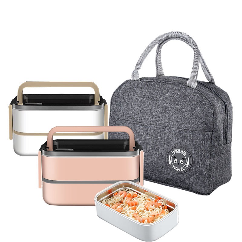 【SG stock】Stainless Steel Insulated Lunch Box FREE Thermal Bag Microwave Oven Portable Lunch Box