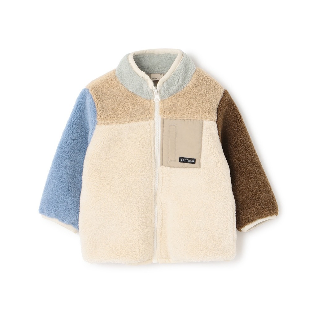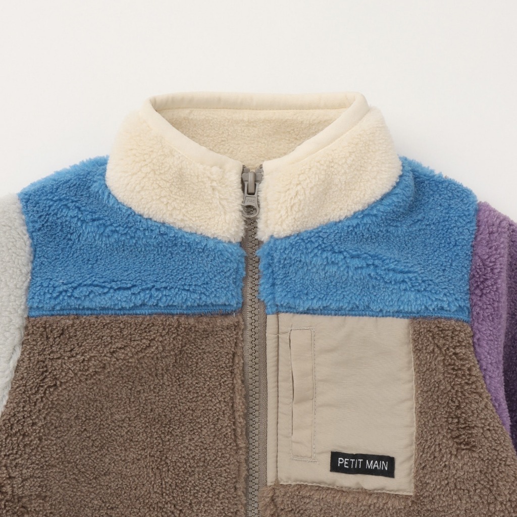 petit main Official Store Warm Fleece Jacket Color Block Design | Kids Outerwear【Shipped from Japan】