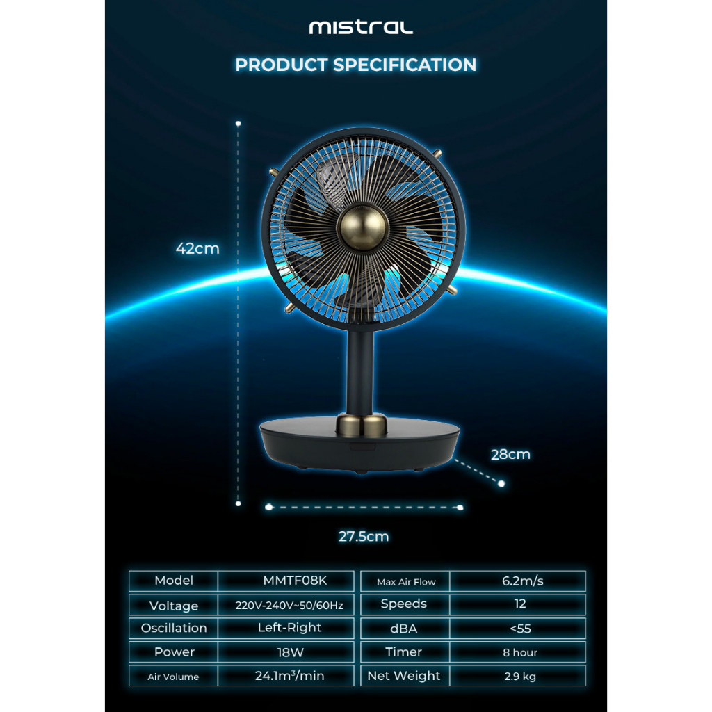 Retrograde by Mistral 8” Metal Table Fan MMTF08K