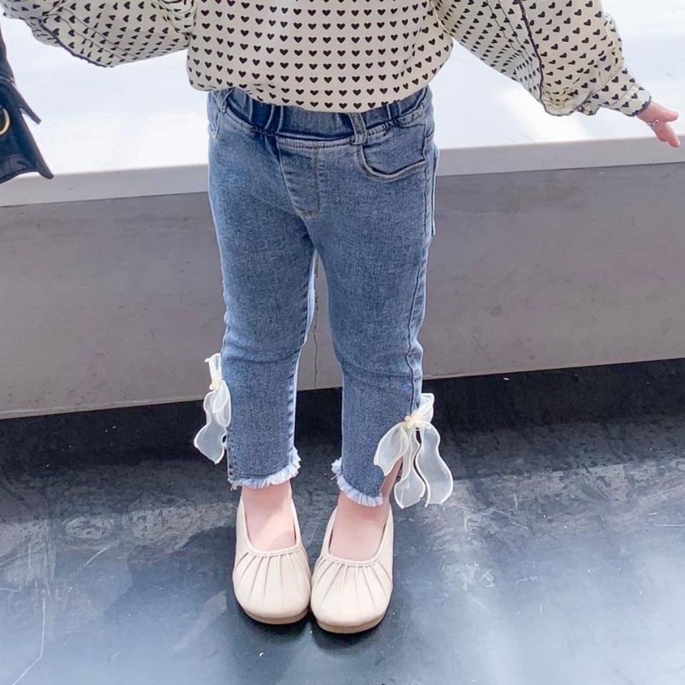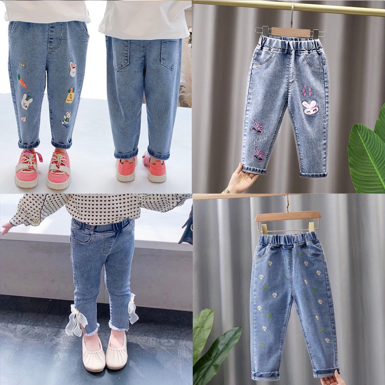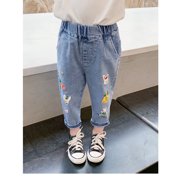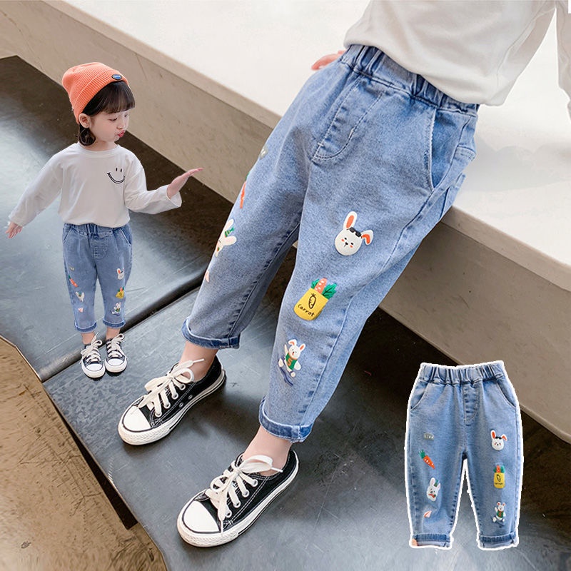 1-9 Years Baby Girls' Jeans Spring Autumn Long Trousers Cartoon Rabbit Embroidered Flower Pattern Pants