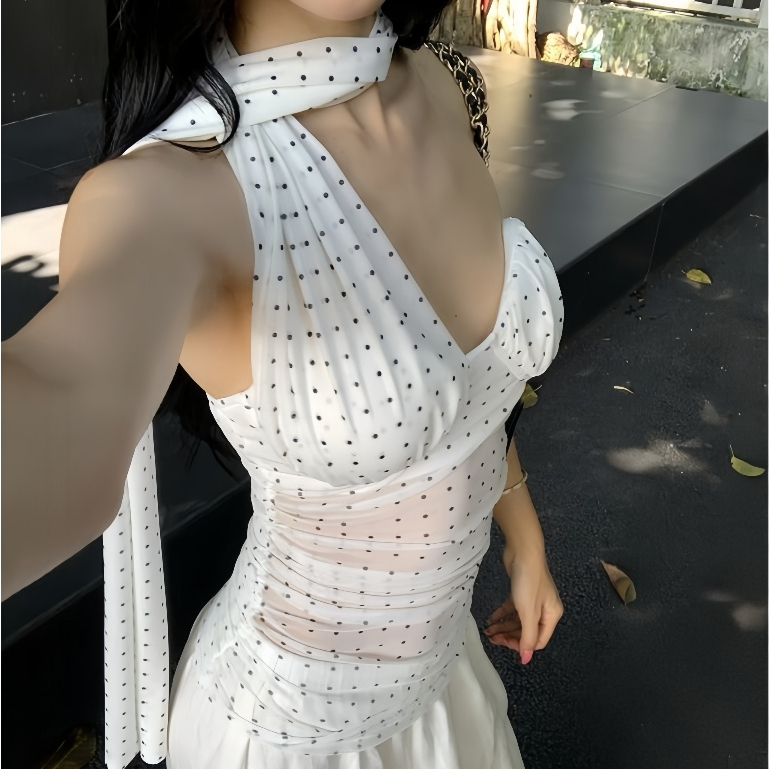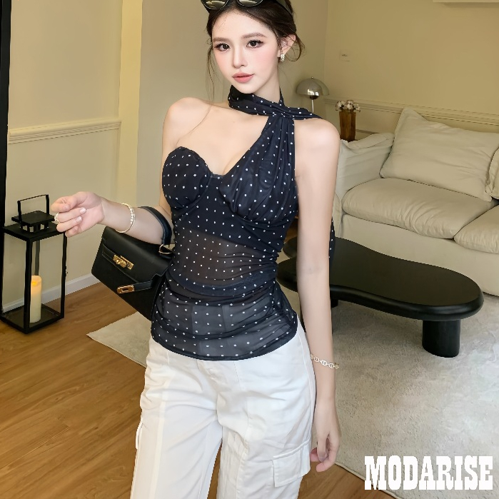 Modarise Tank Top Polka Dot Style Casual For Holidays Assimmetric Neck Women's Sleeveless Shirt Square Mesh Fabric Beautiful Dress Polka Dot Top