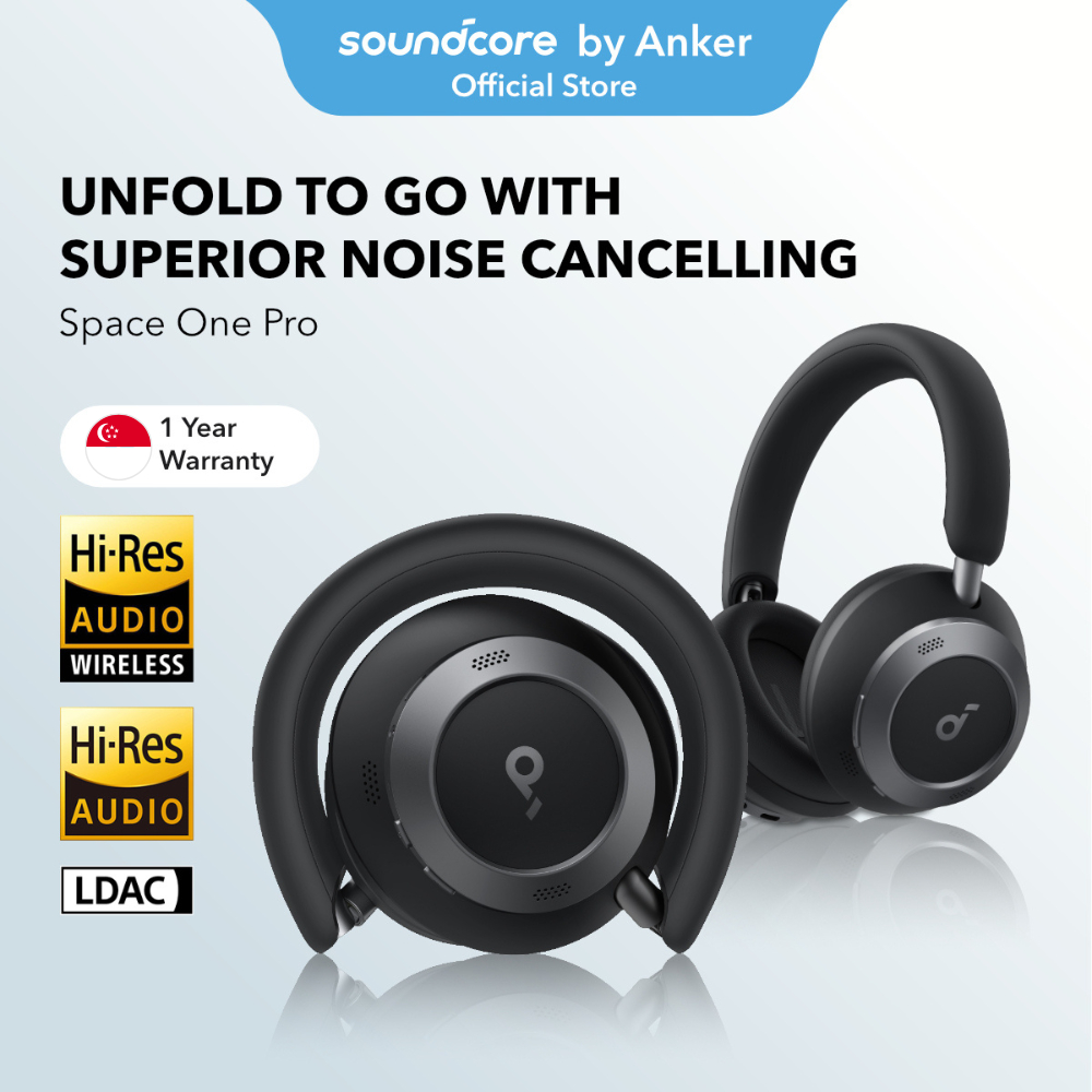 Soundcore Space One Pro, Adaptive Active Noise Cancelling Headphones, 6 Mics, Foldable Design, Hi-Res Wireless Audio