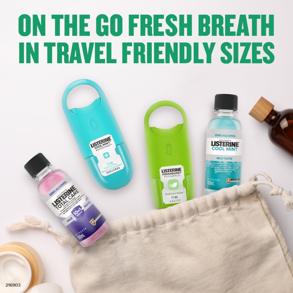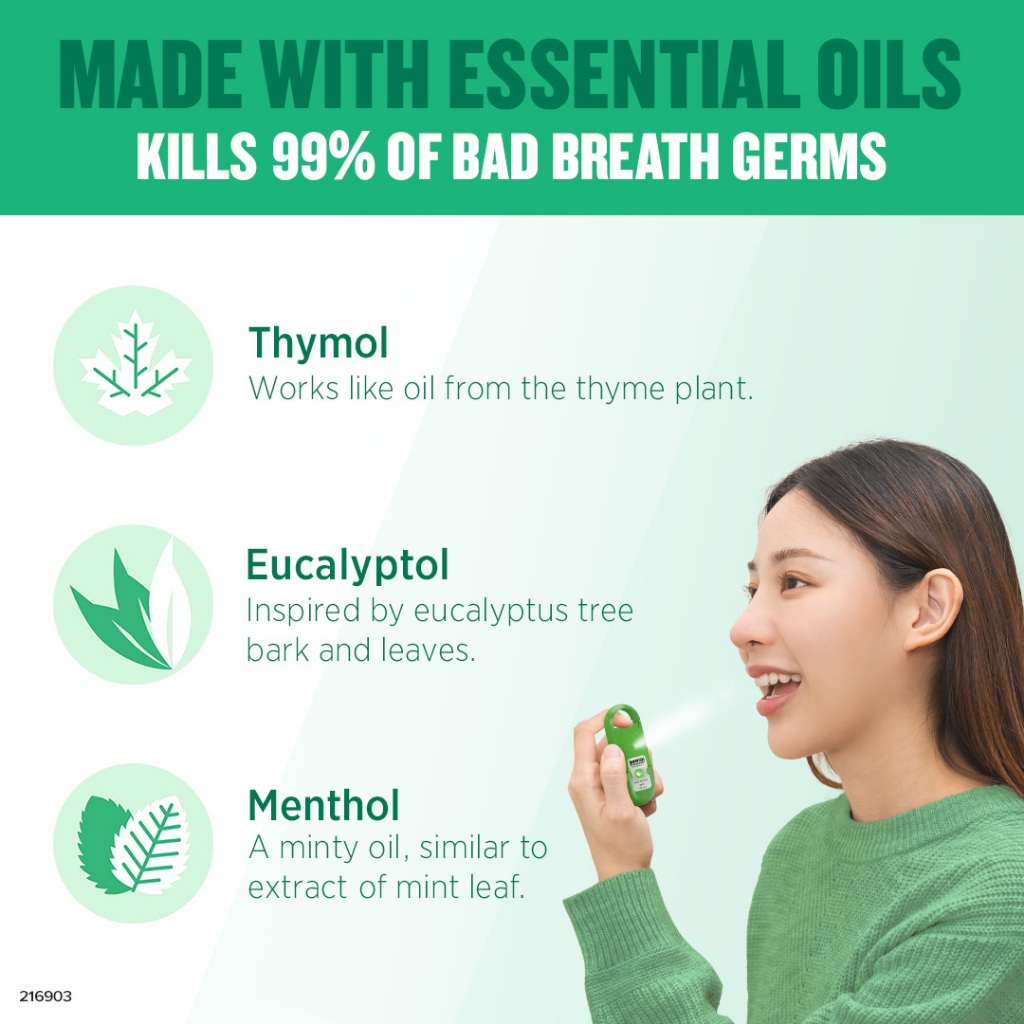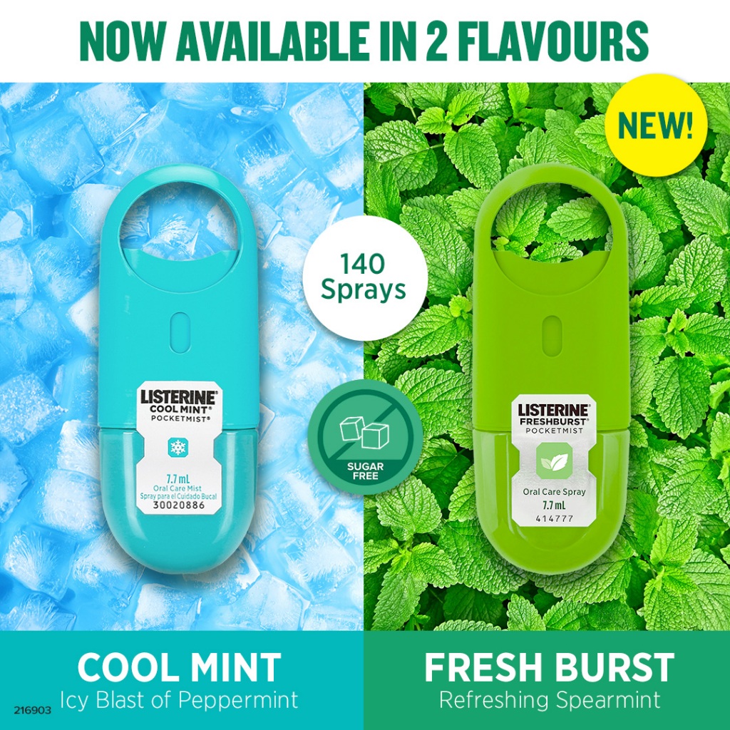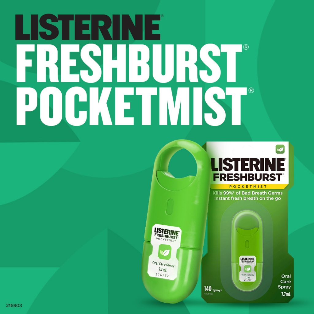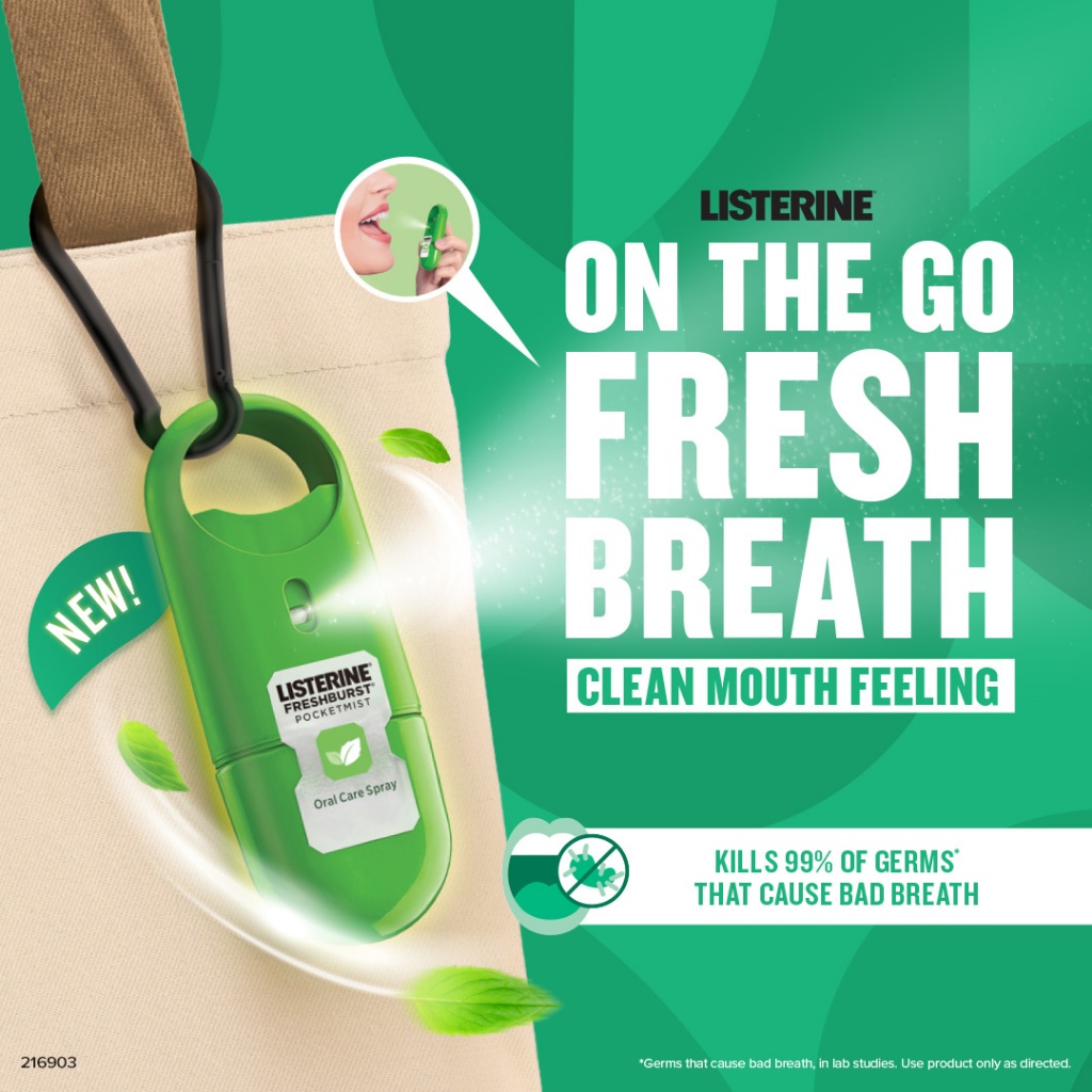 [Bundle of 4] Listerine PocketMist FreshBurst Breath Spray 7.7ml, Kills 99.9% Bad-Breath Germs