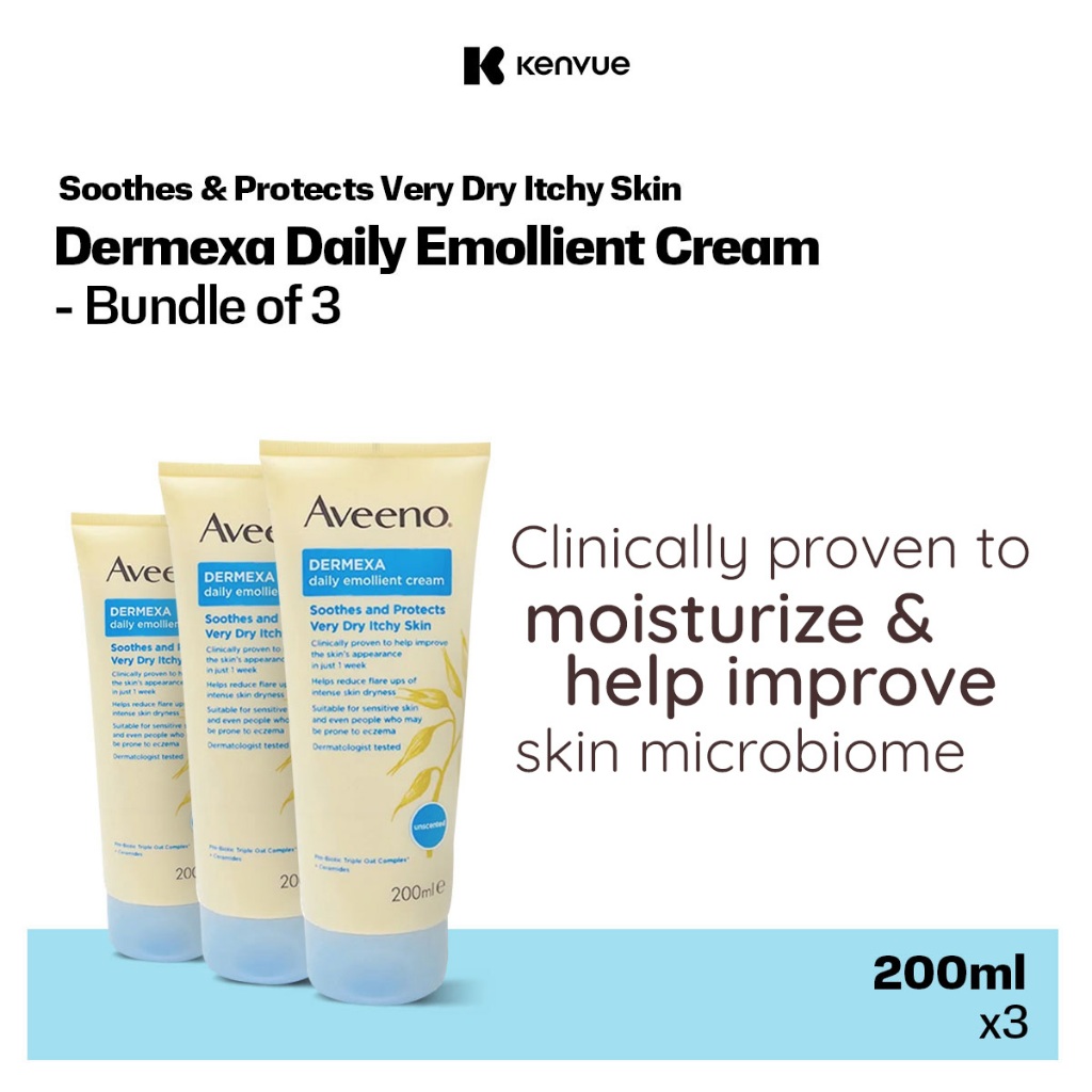 [Bundle of 3] Aveeno Body Dermexa Daily Emollient Cream For Eczema-Prone Skin 200ml