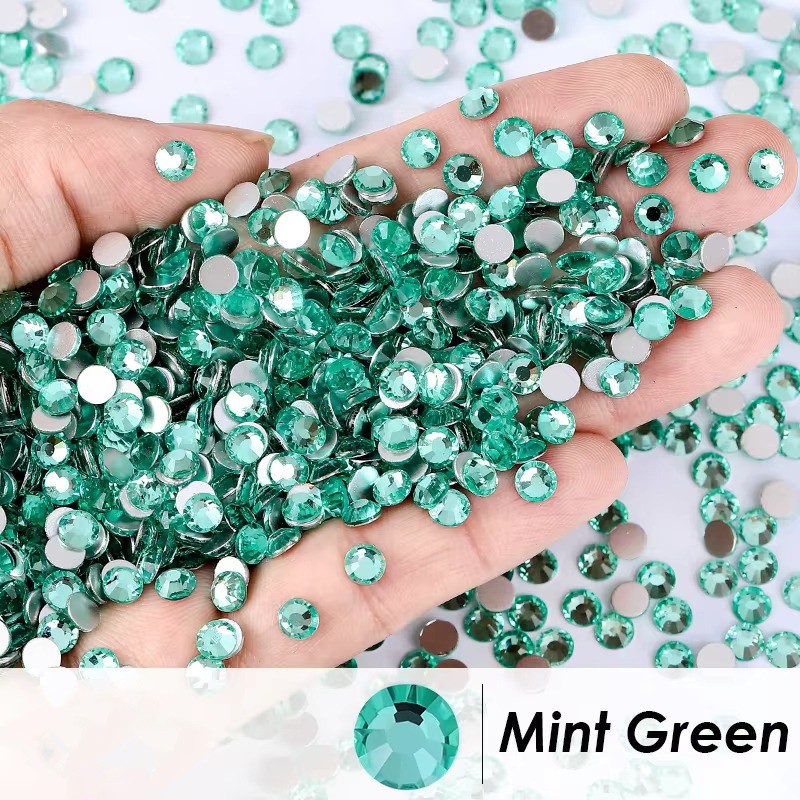 SS6-SS50 Mint Green GlittersCrystal Rhinestone Flatback Strass Diamond Gem Glue On Rhinestones For Crafts