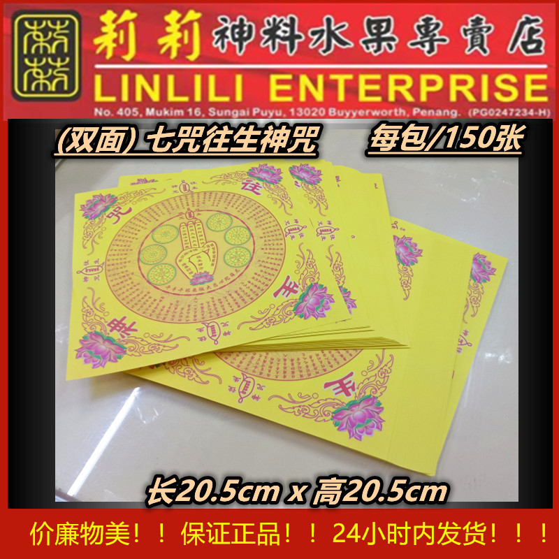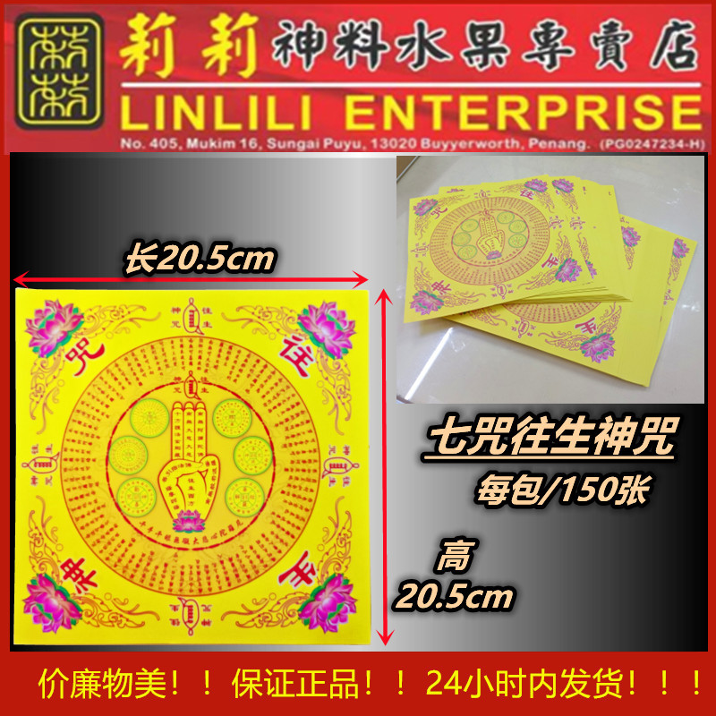 单色 七咒往生神咒 (一包150张 20cmX20cm) 五色七咒往生钱 莲花纸 往生钱 七咒往生钱 折纸 往生咒 往生神咒 praying product joss paper 往生者 大悲咒 好兄弟 清明